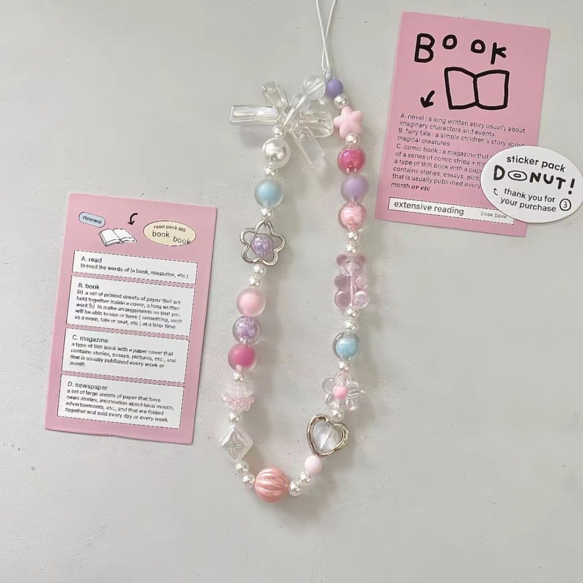 • 투명한 활 핑크 곰 구슬 끈