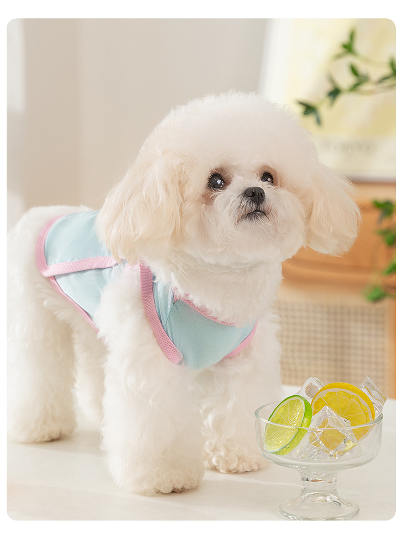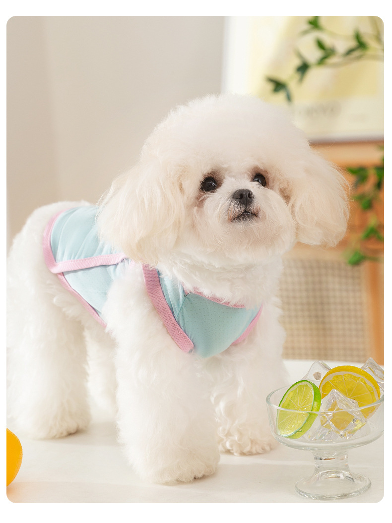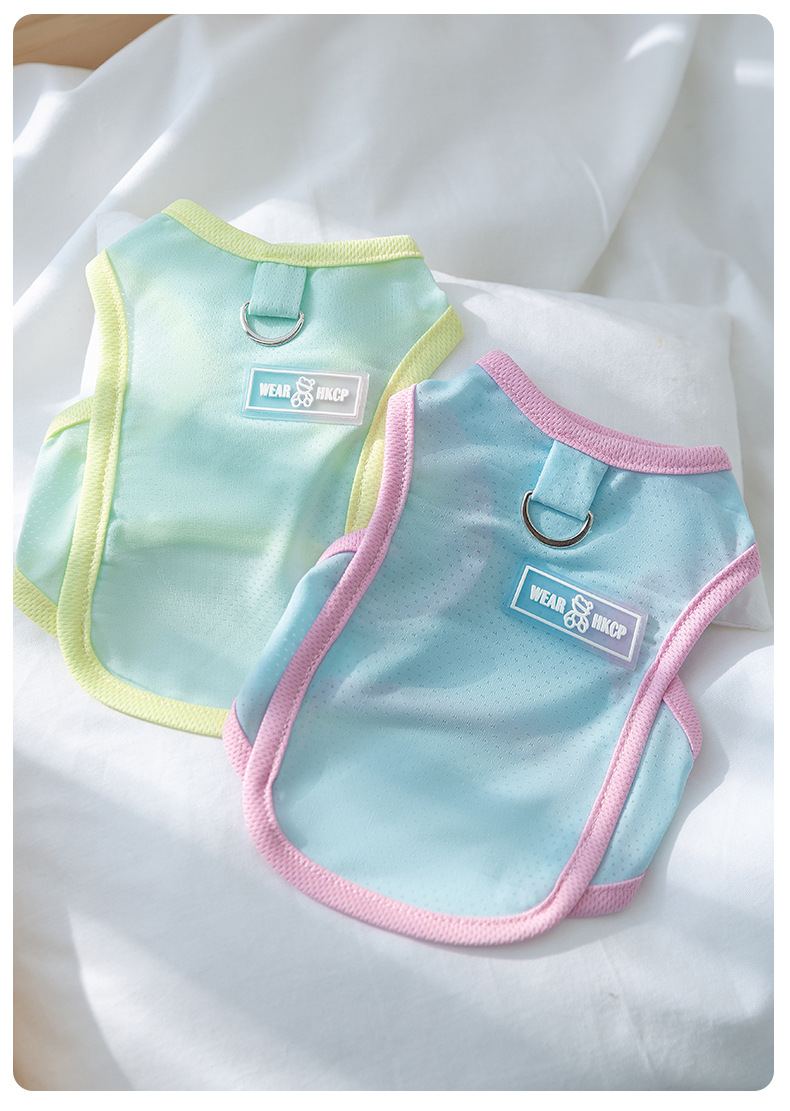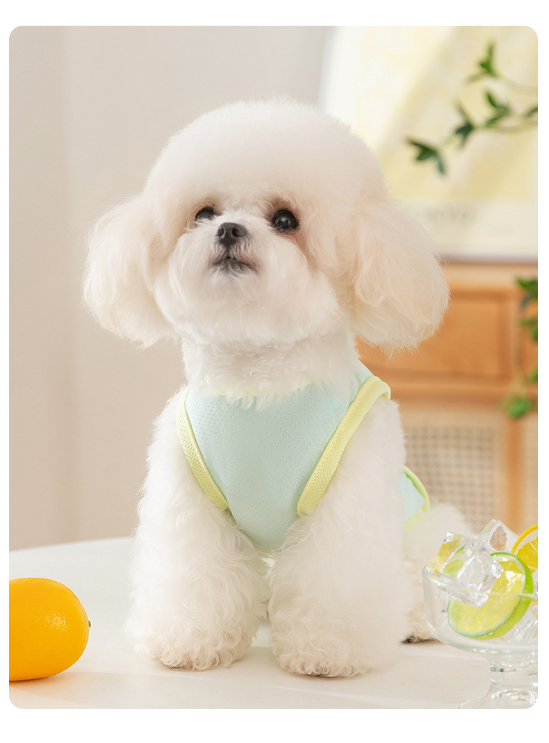 여름 개 얇은 쿨 아이스 실크 조끼 고양이 두 다리 통기성 테디 보메이 작은 개 개 옷스토어 가기
