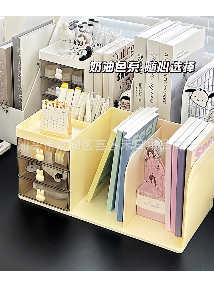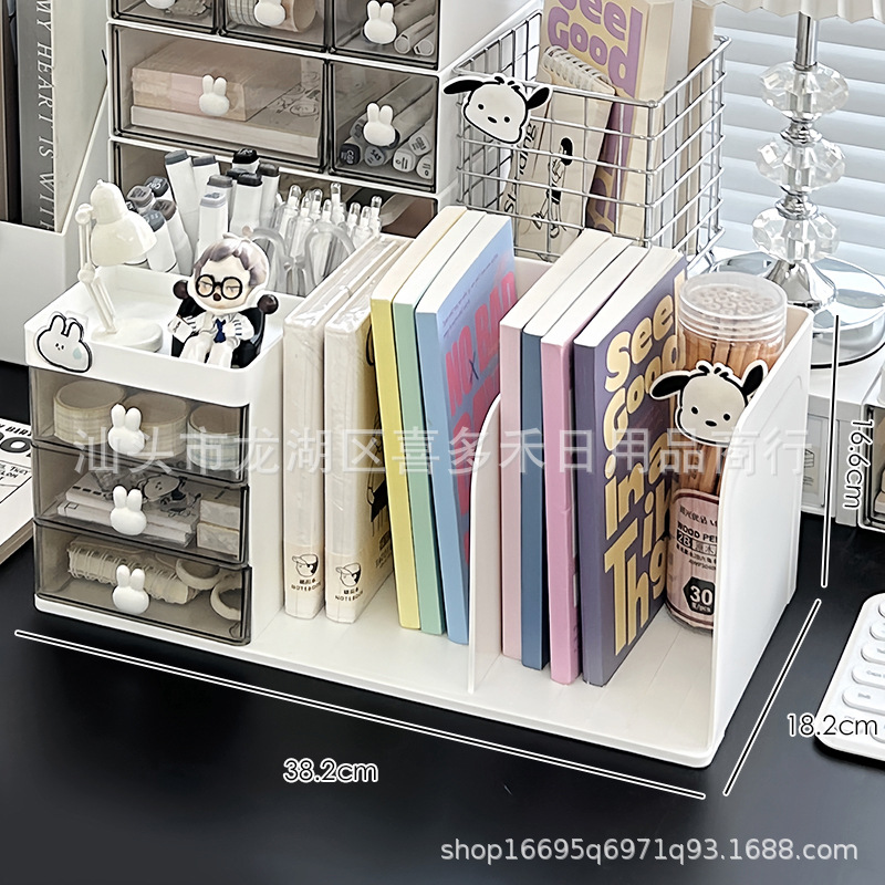 책 스탠드 데스크탑 서랍 유형 학생 책상 펜 홀더 선반 책장 문구 책 파일 저장 상자