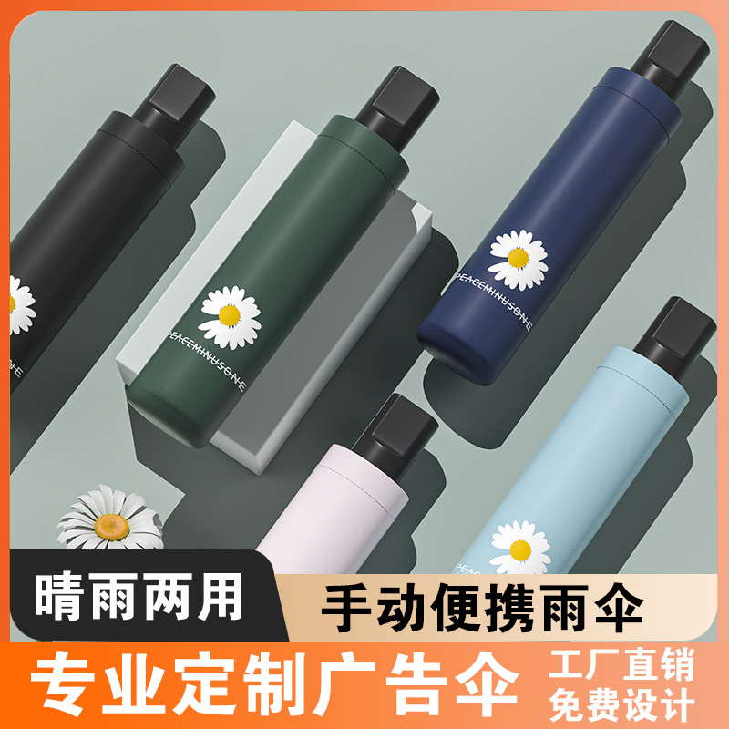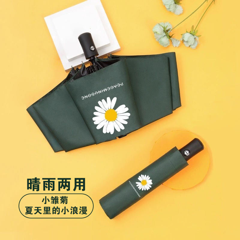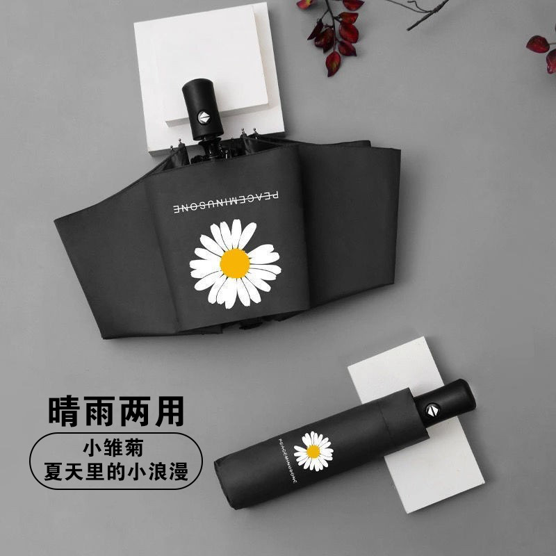폭발성 작은 데이지 자동 우산 검은 고무 비 이중 사용 트렌드 선 스크린 우산 인쇄 로고 재고 도매스토어 가기