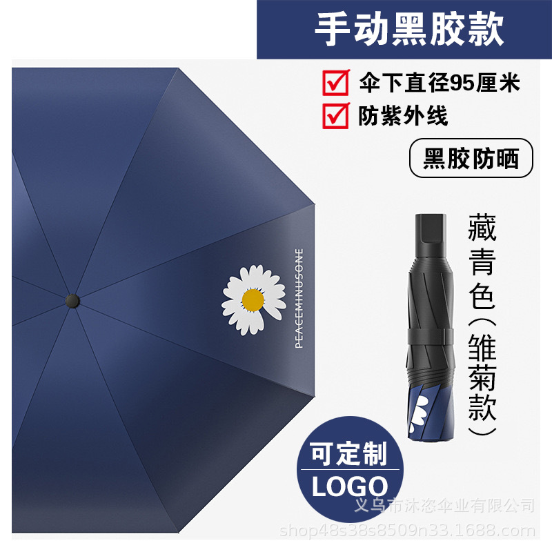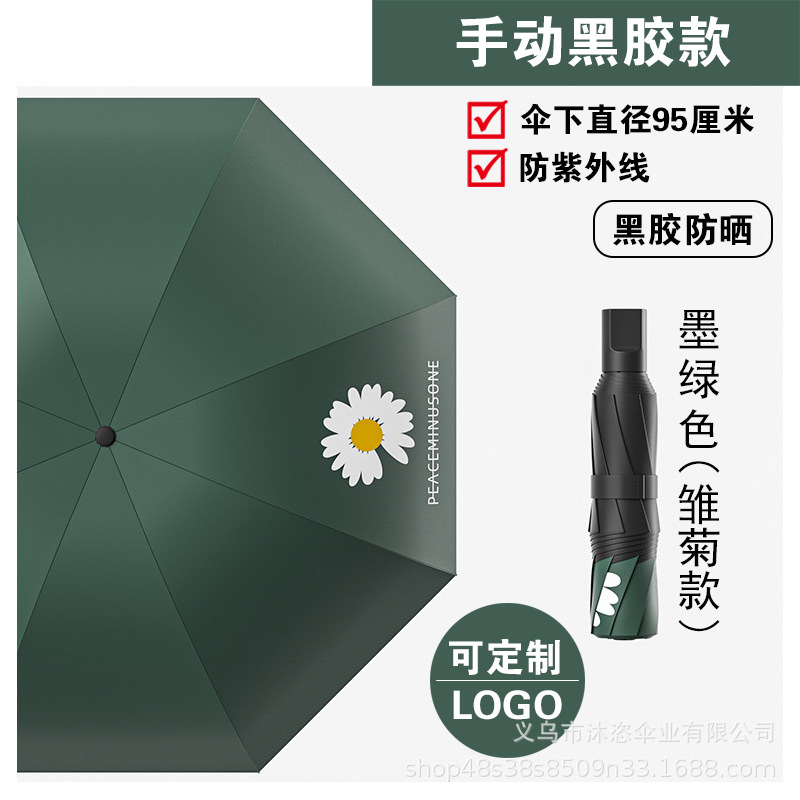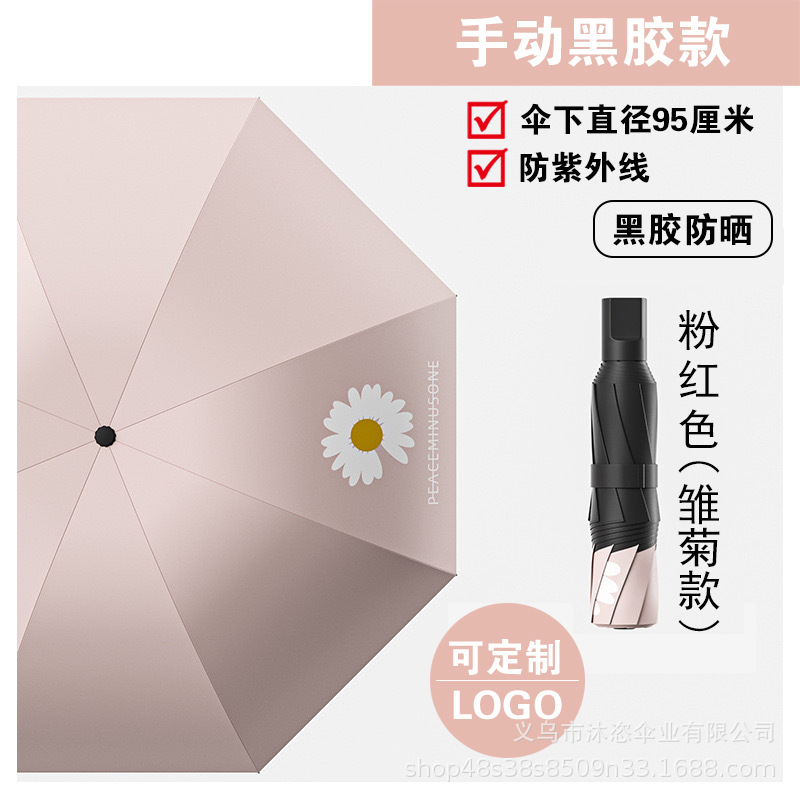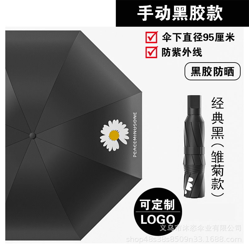 폭발성 작은 데이지 자동 우산 검은 고무 비 이중 사용 트렌드 선 스크린 우산 인쇄 로고 재고 도매