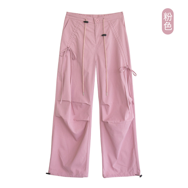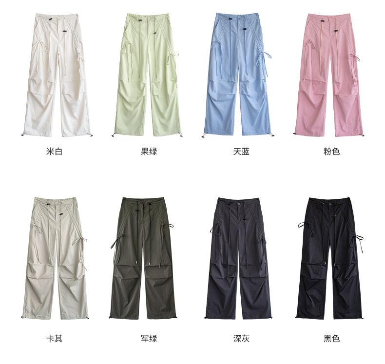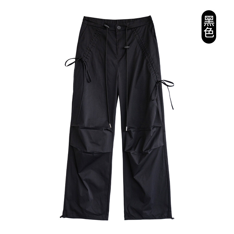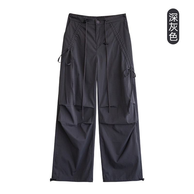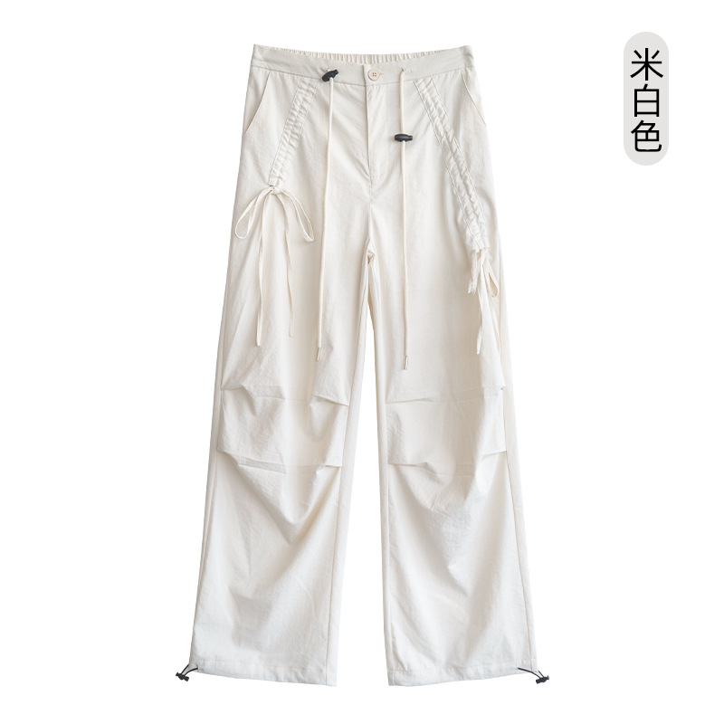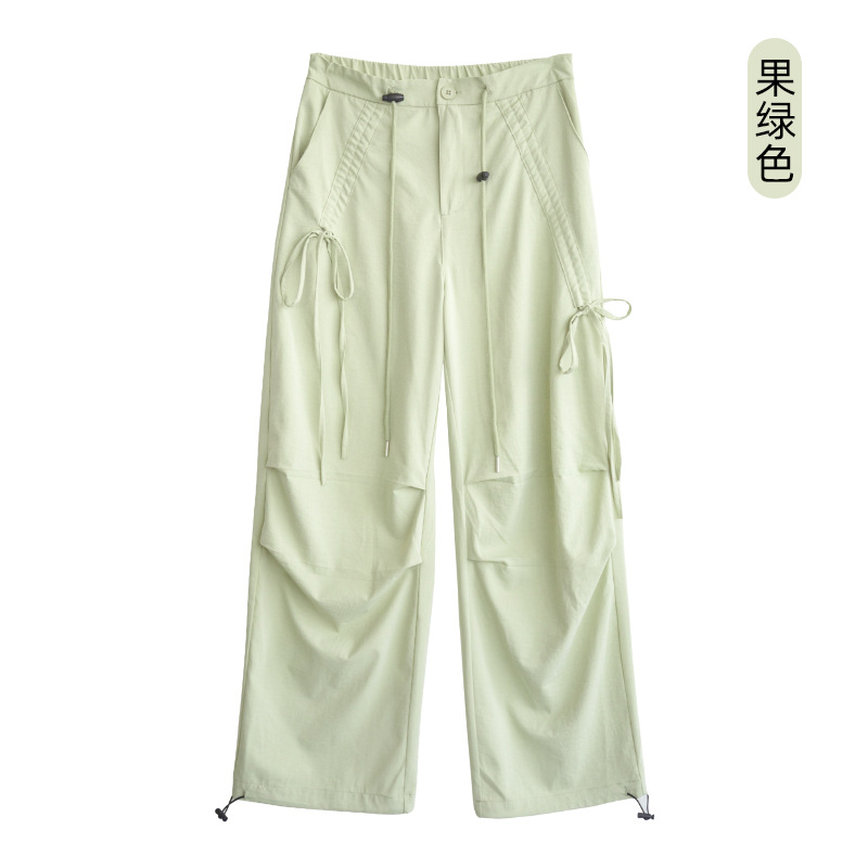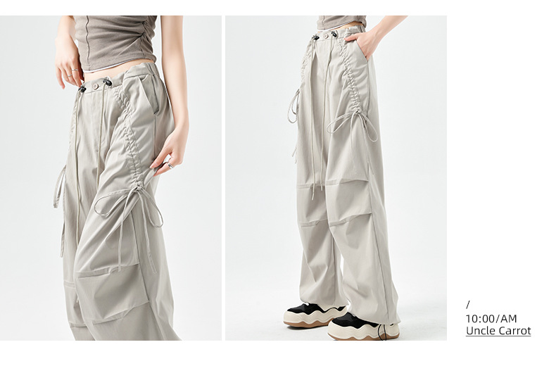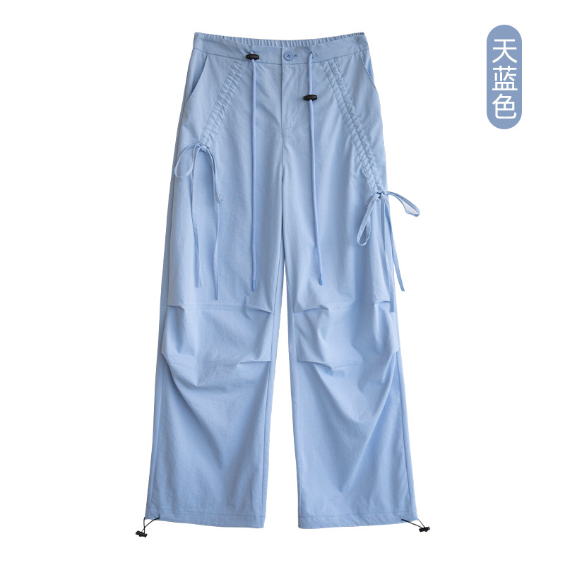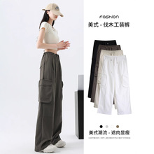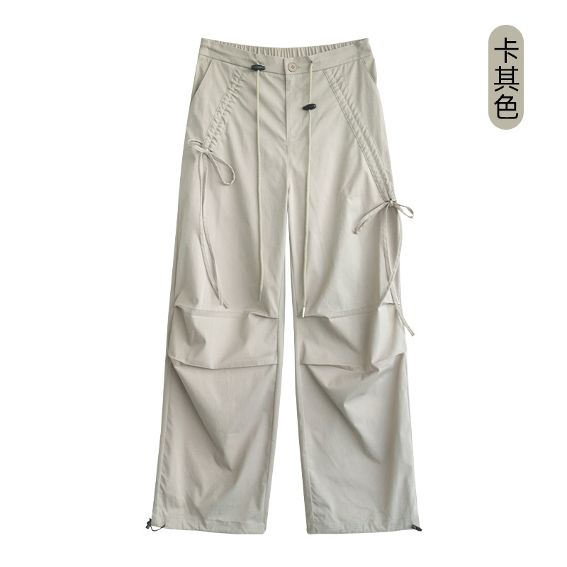 카키 작업복 여성용 여름 얇은 모델 2025 신상품 빠른 건조 아메리칸 스타일 스트레이트 등산 바지 낙하산 바지