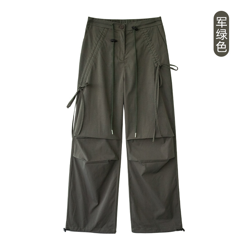 카키 작업복 여성용 여름 얇은 모델 2025 신상품 빠른 건조 아메리칸 스타일 스트레이트 등산 바지 낙하산 바지스토어 가기