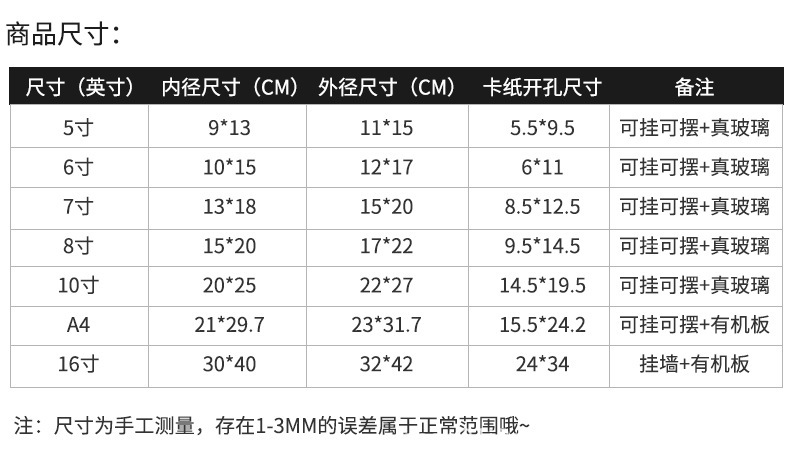 • A4 (내경 21*29.7) 을 걸고 플렉시 유리를 놓을 수 있습니다.