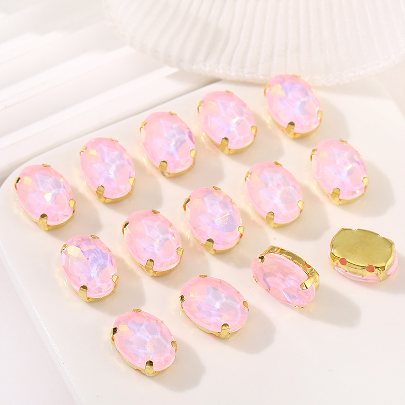 타원형 단백질 형광 유리 구멍이있는 4 개의 코너 발톱 드릴 손으로 꿰매는 싱글 그랩 다이아몬드 웨딩 원피스 쥬얼리 DIY 의류 액세서리스토어 가기
