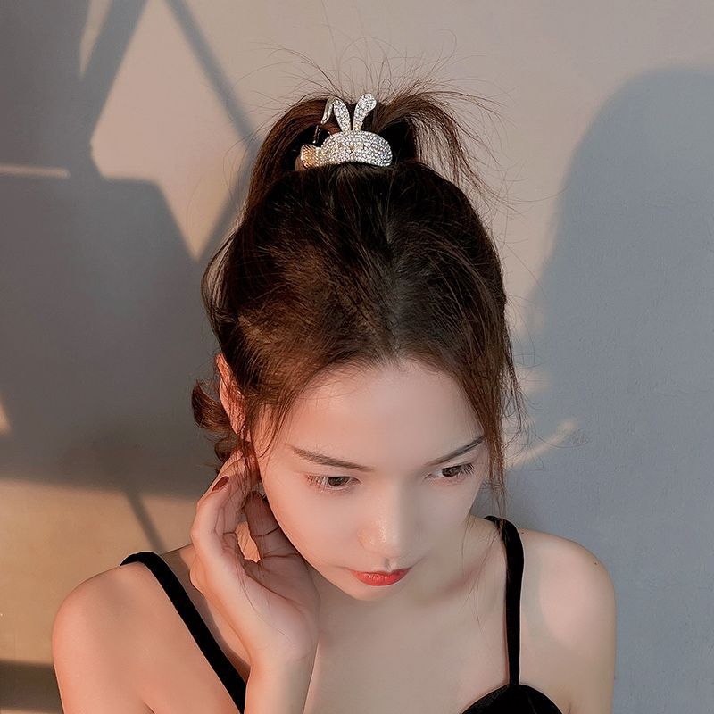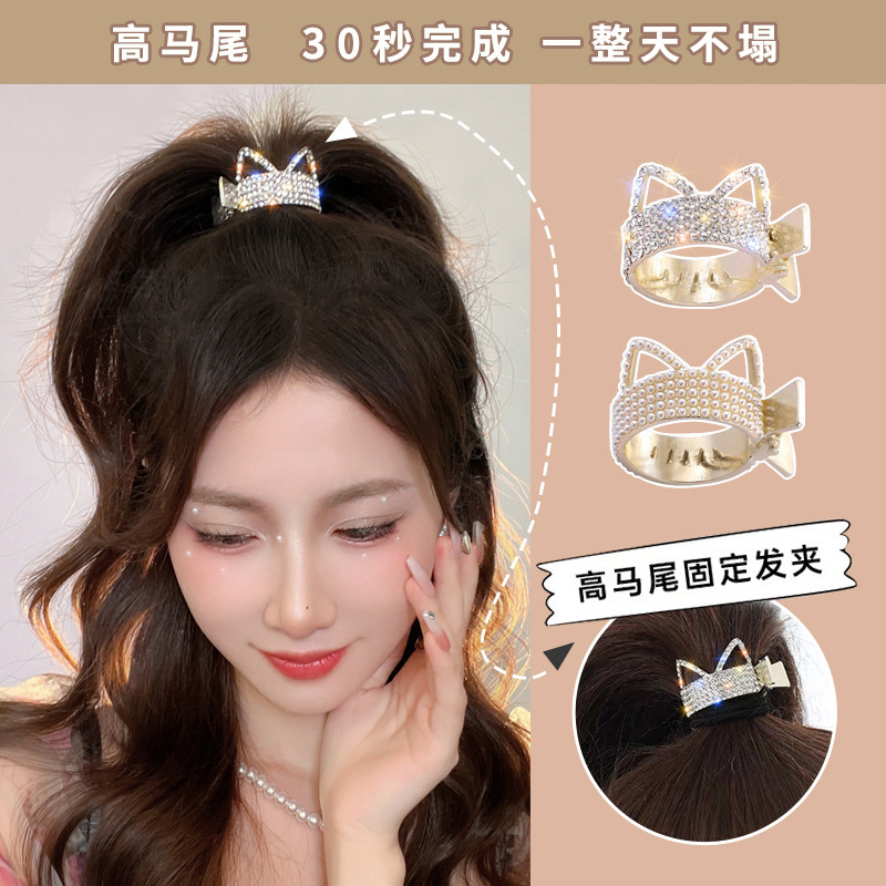 • 라인스톤 고양이 귀 - 실버 포니테일 클립
