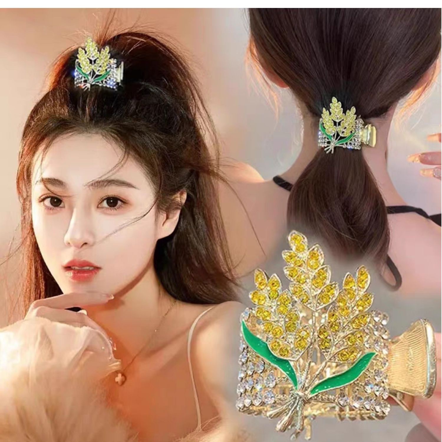 • 6줄의 크로스 라인스톤 - 골드 포니테일 클립