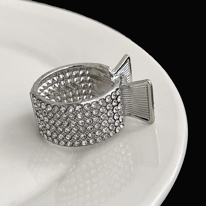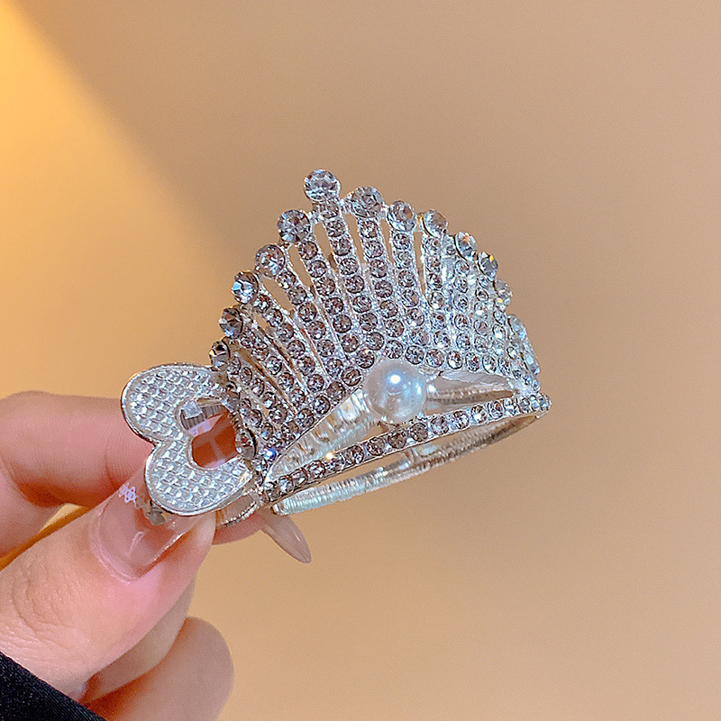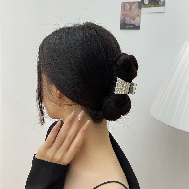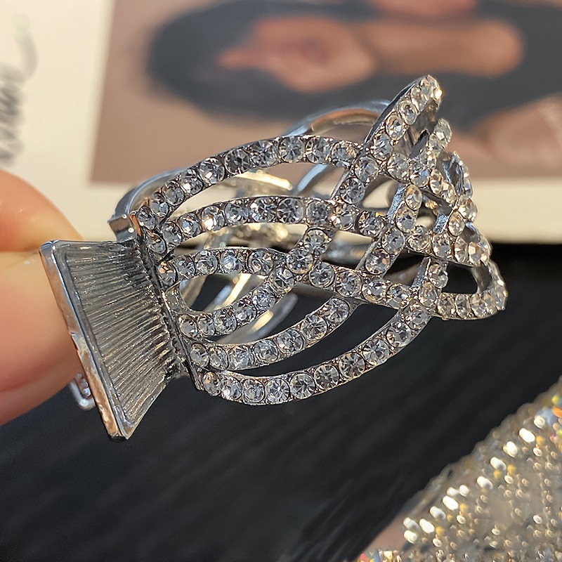 • 중공 직선 배수 다이아몬드 실버 포니테일 클립