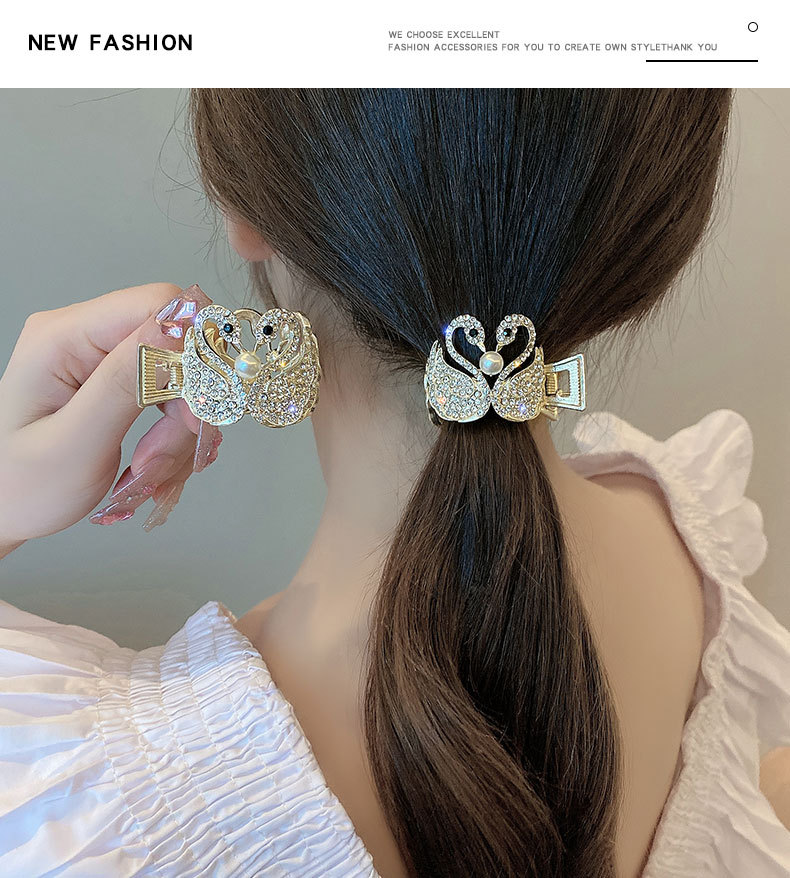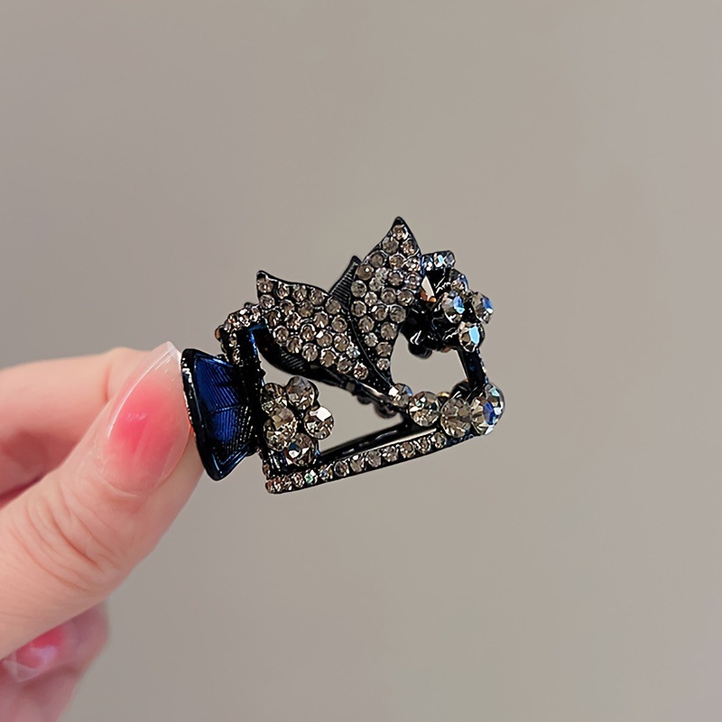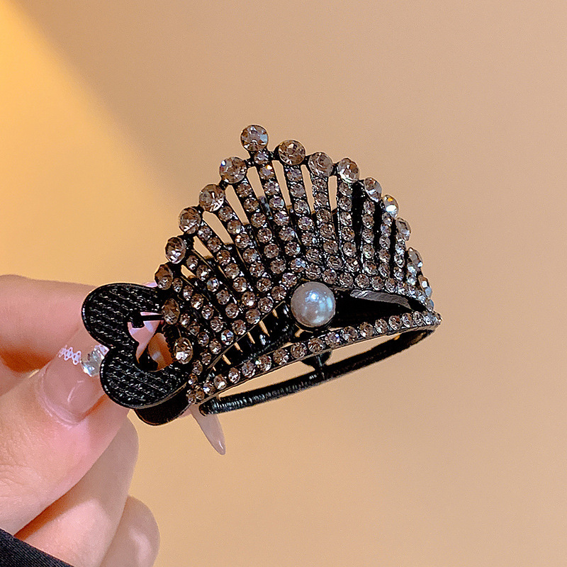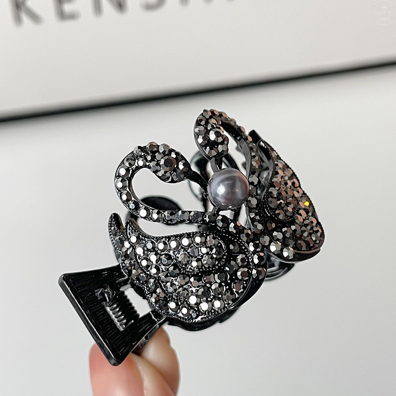• 호박 라인스톤 건 블랙 포니테일 클립