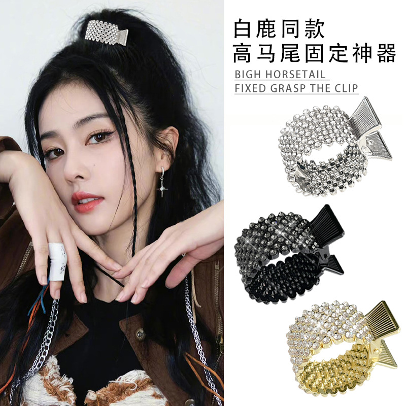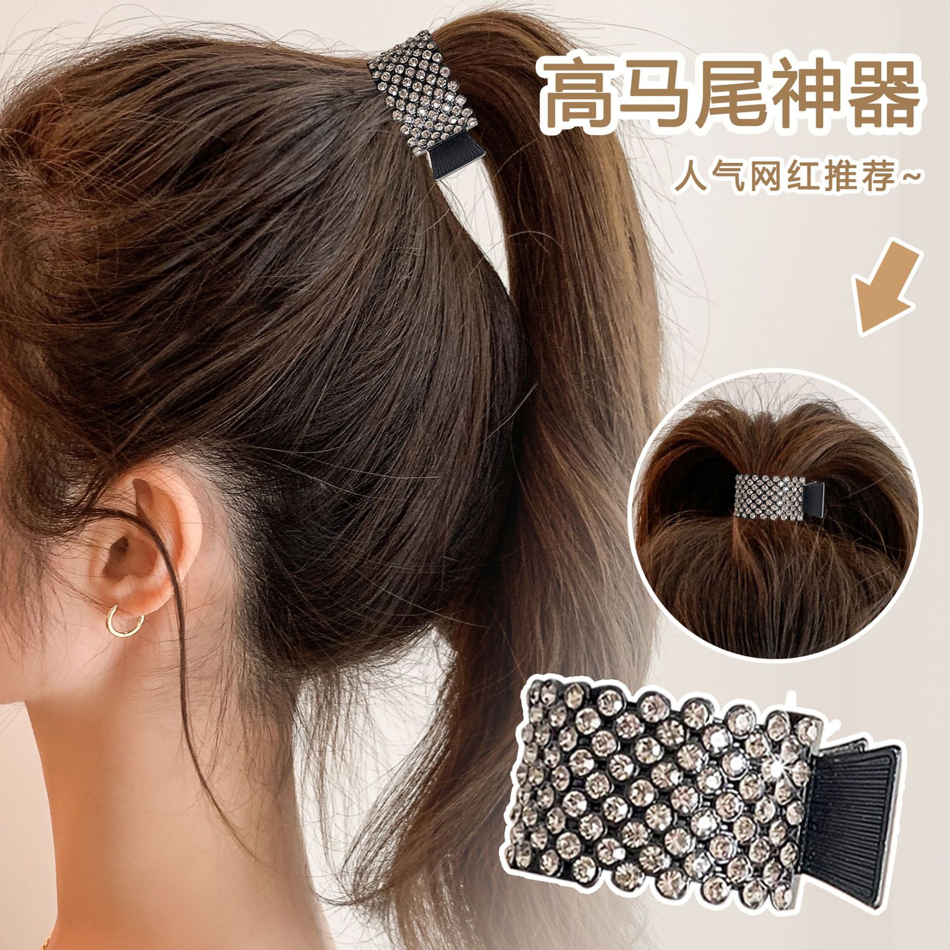 • 불규칙한 라인스톤 건 블랙 포니테일 클립