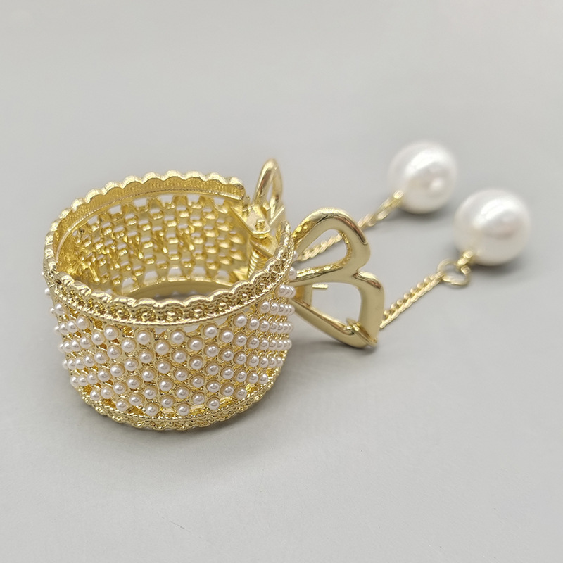 • 레이스 중공 진주 모조 다이아몬드-골드