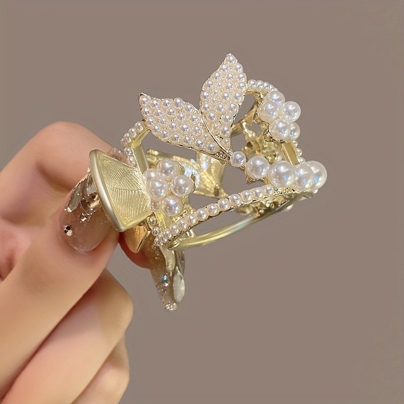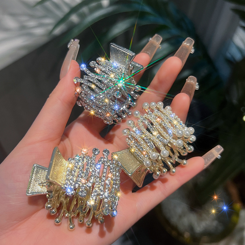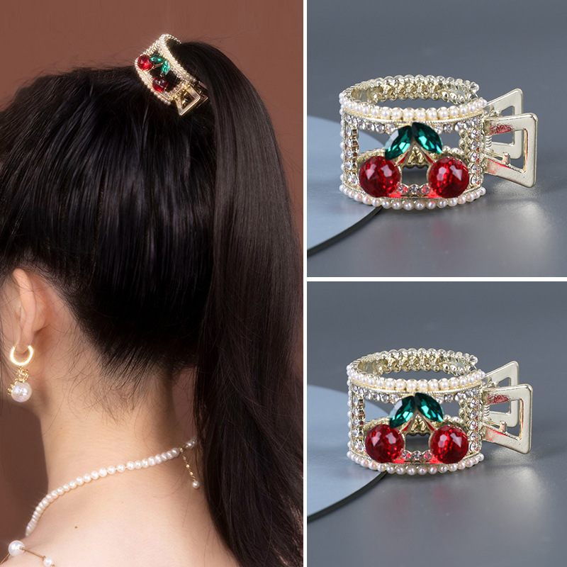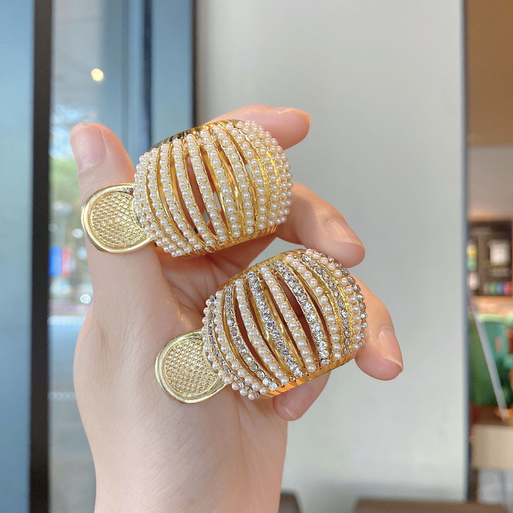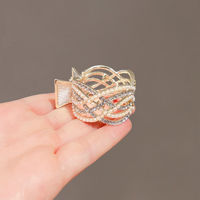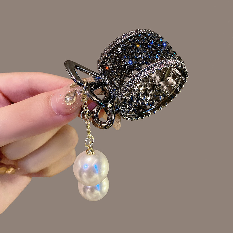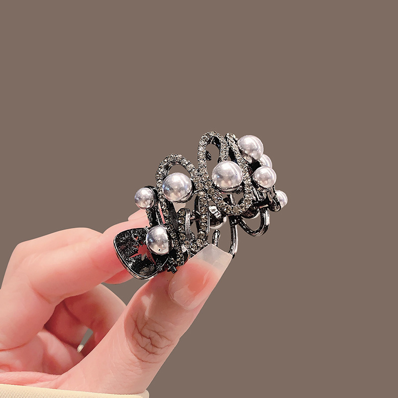 높은 포니 테일 헤어핀 고정 유물 2024 그물 레드 새로운 진주 모조 다이아몬드 합금 플레이트 머리핀 머리 장식 헤어 액세서리스토어 가기