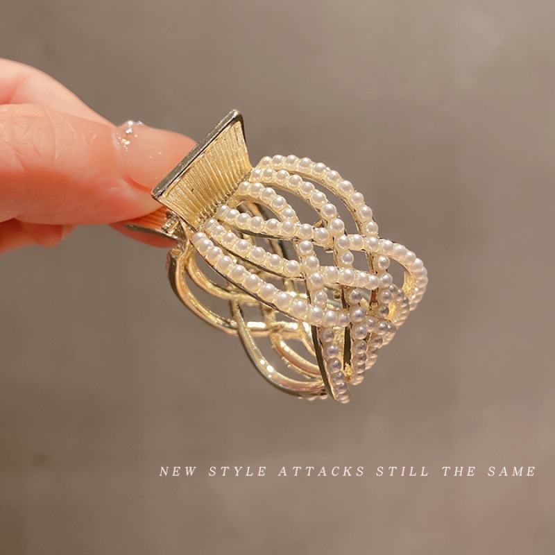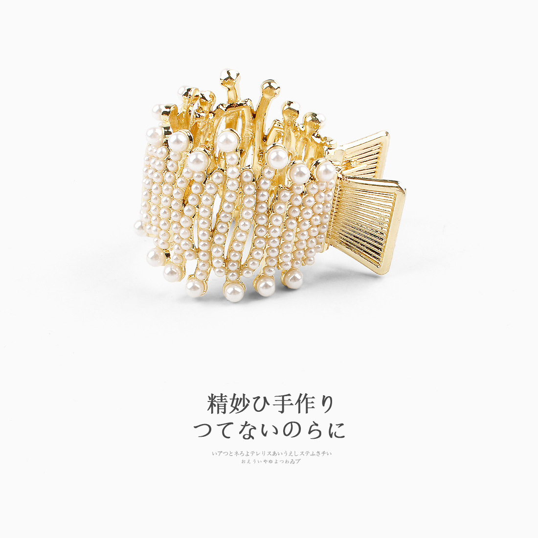 • 6줄의 크로스 풀 펄 골드 포니테일 클립