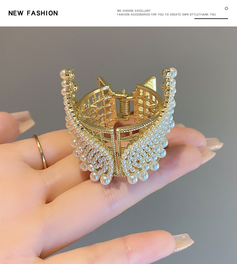 • 진주 고양이 귀 - 골드 포니테일 클립