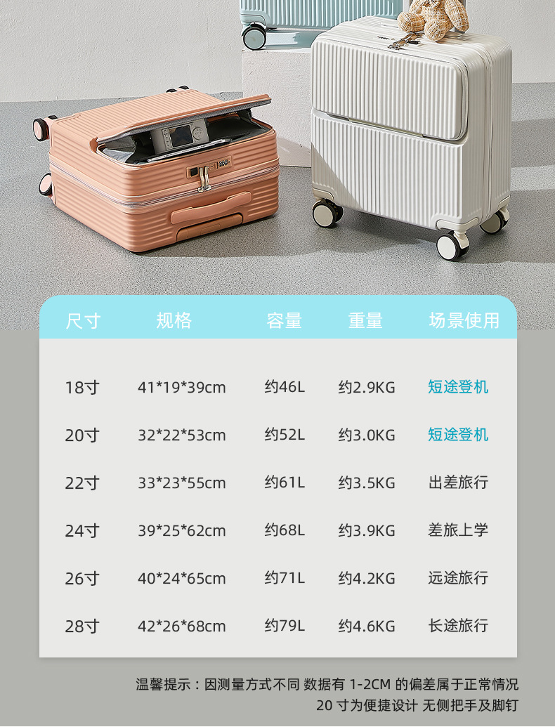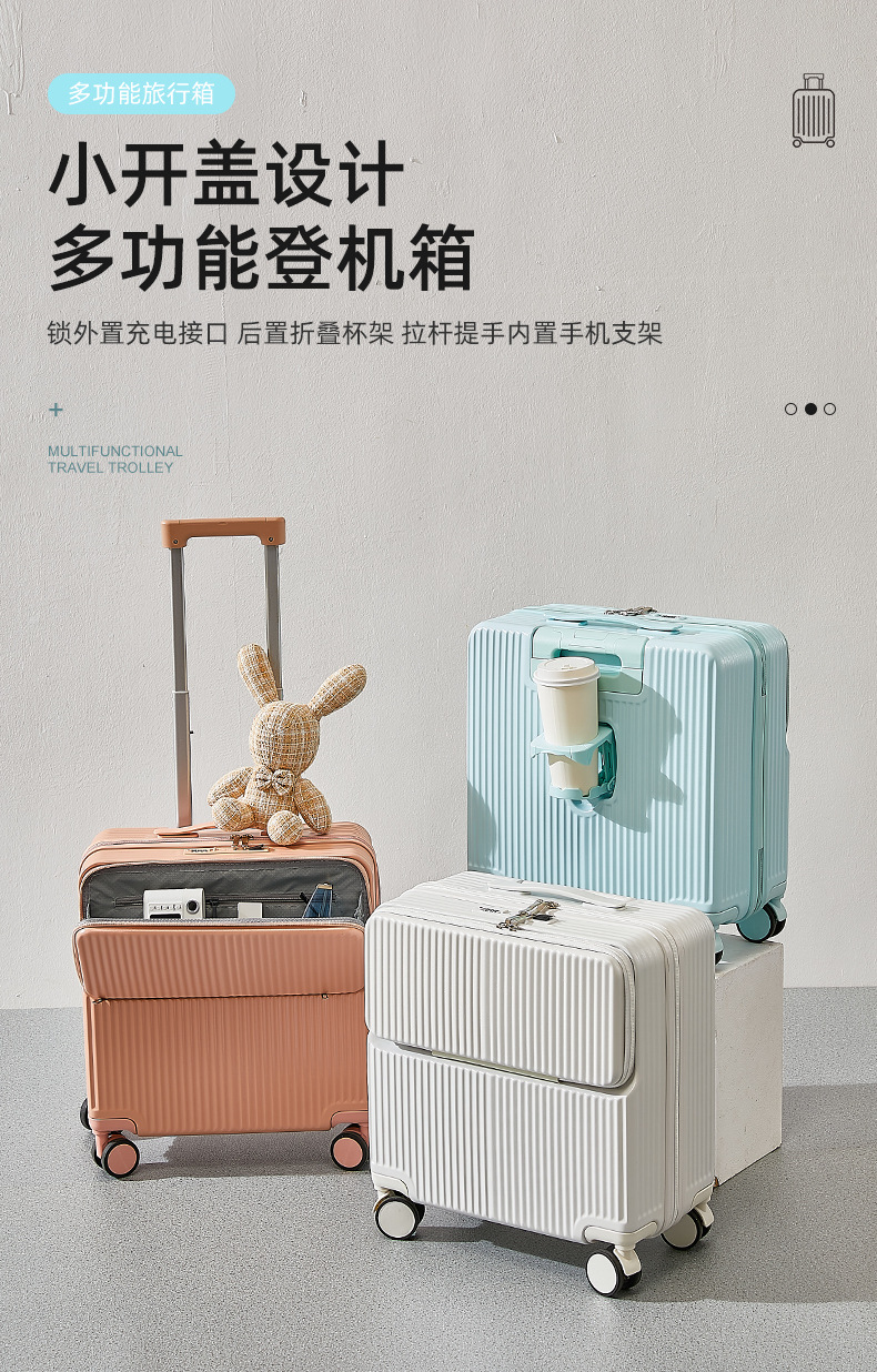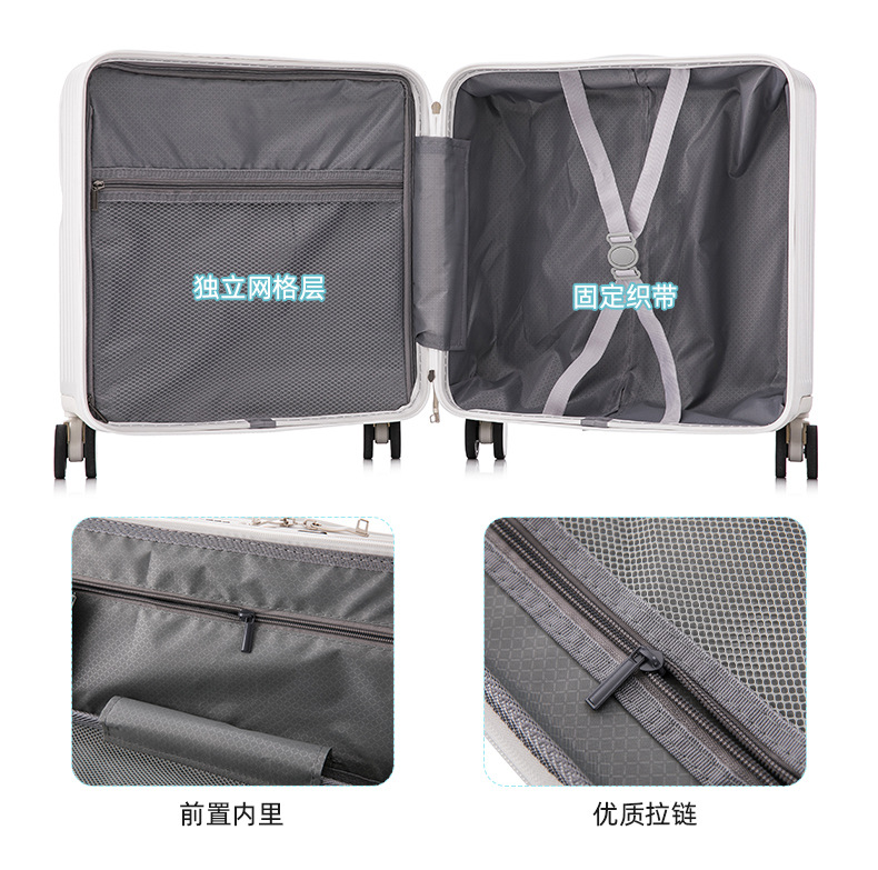 18 인치 경량 알루미늄 프레임 탑승 수하물 케이스 전면 오픈 뚜껑스토어 가기