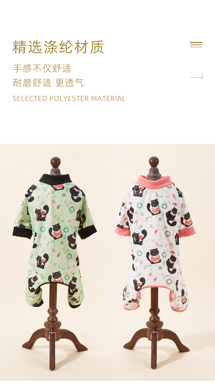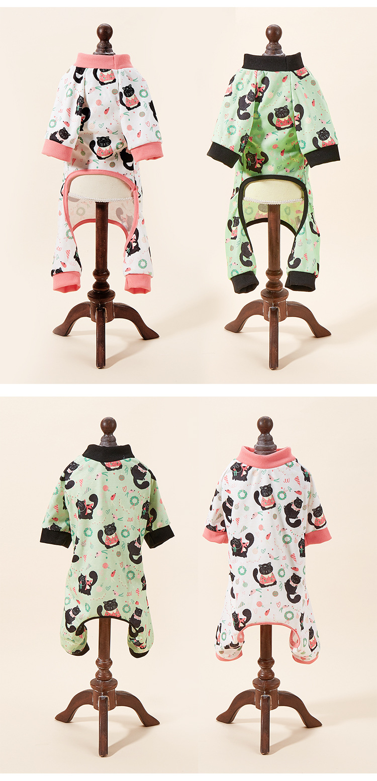 애완 동물 옷 개 네 다리 검은 고양이 프린트 점프 수트 고양이 개 만화 애완 동물 의류 통기성 개 옷