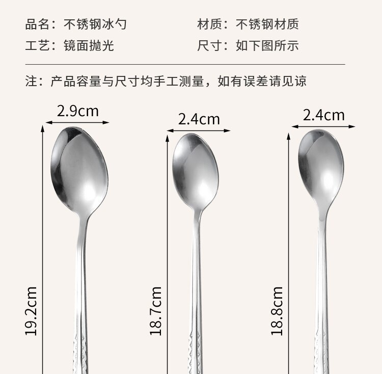 스테인레스 스틸 커피 혼합 숟가락 긴 손잡이 얼음 숟가락 주방 상업 조미료 맛 또는 작은 숟가락 우유 숟가락 디저트 꿀 숟가락