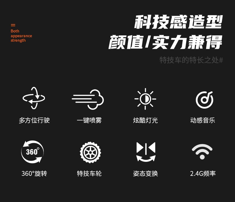 국경 간 스턴트 개 2.4G 원격 제어 로봇 개 스윙 암 소년 전자 애완 동물 장난감 자동차 스프레이 소리와 빛 아마존