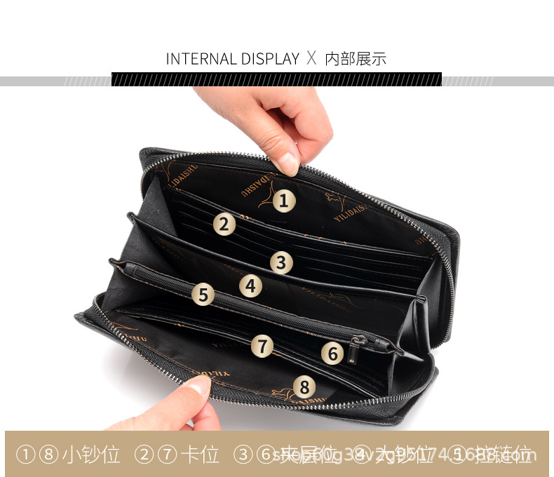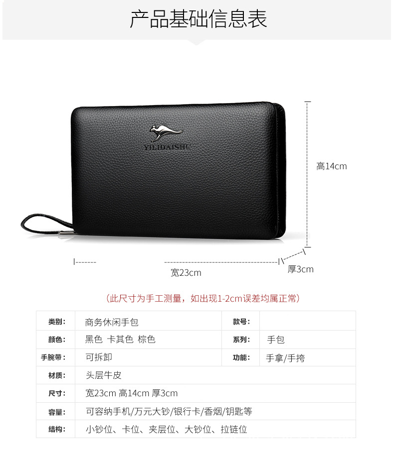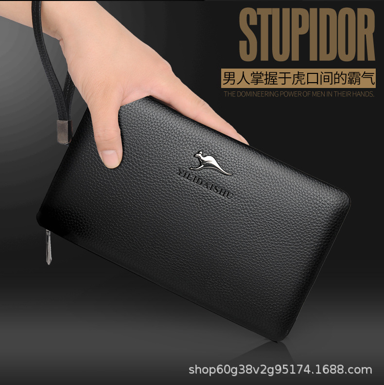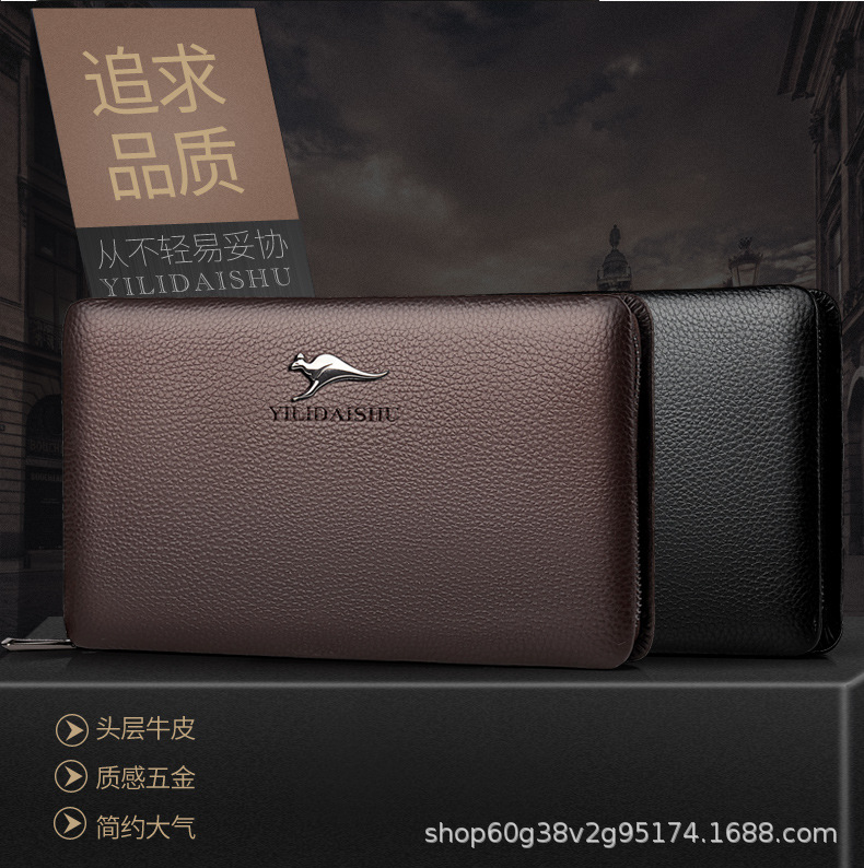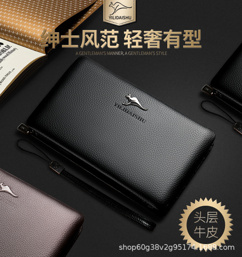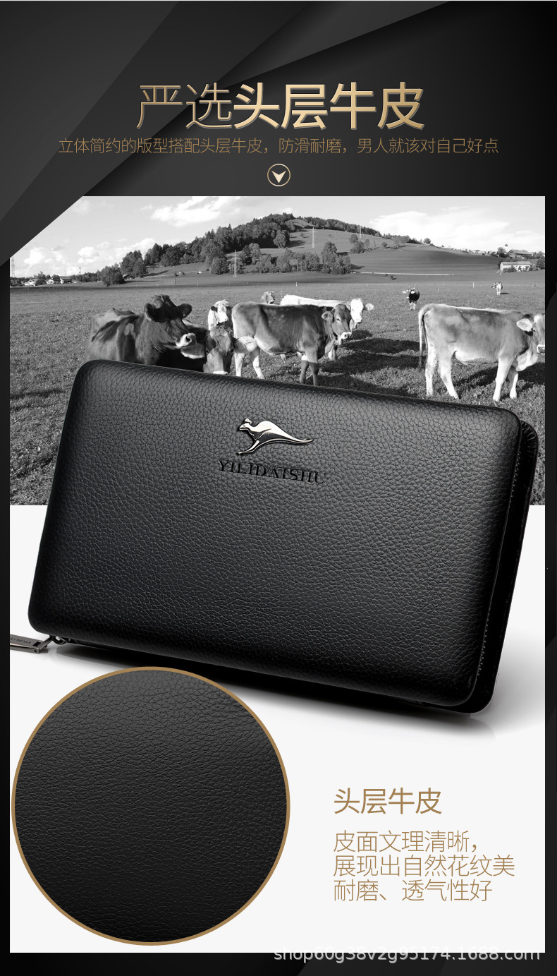 첫 번째 레이어 소 가죽 남성 가방 새로운 정품 가죽 남성 손 가방 캐주얼 소프트 가죽 멀티 레이어 클러치 백 지갑 소스 제조업체