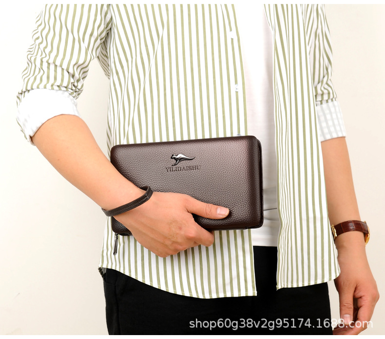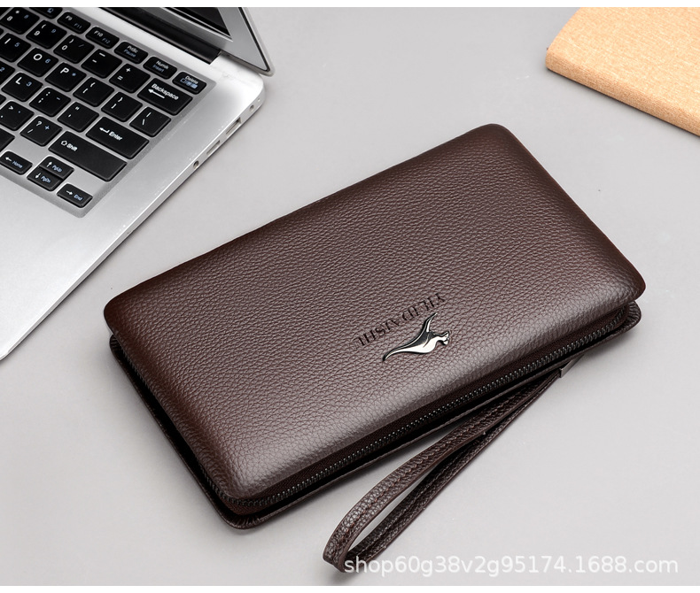 첫 번째 레이어 소 가죽 남성 가방 새로운 정품 가죽 남성 손 가방 캐주얼 소프트 가죽 멀티 레이어 클러치 백 지갑 소스 제조업체스토어 가기