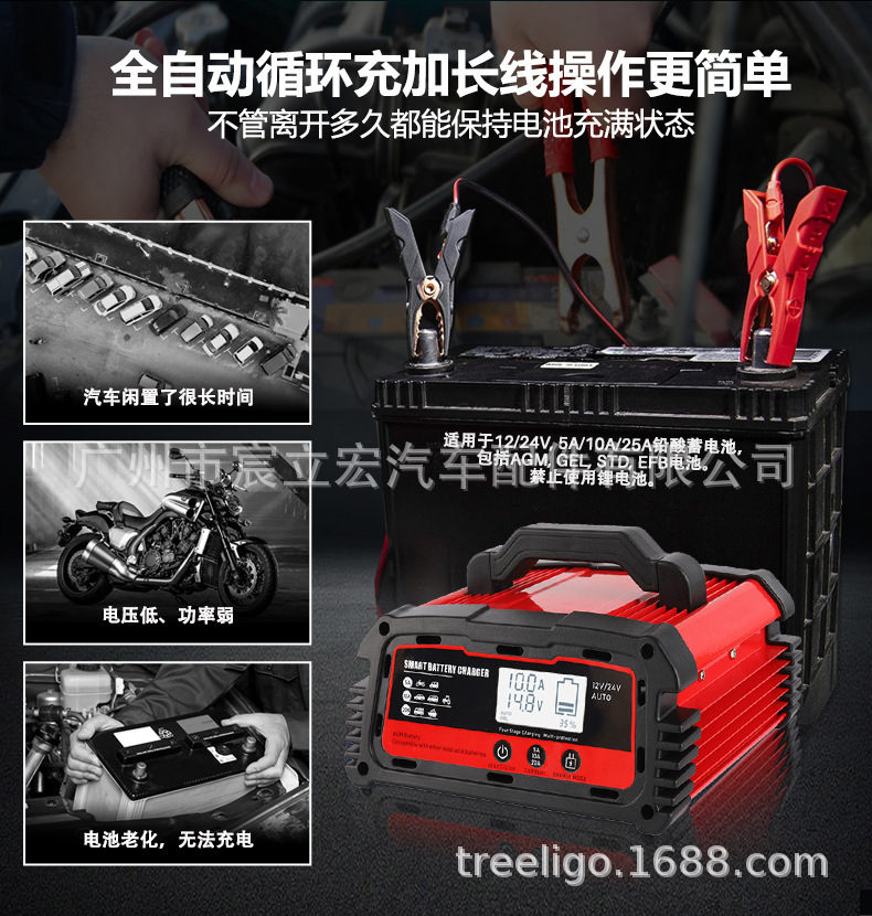 소스 제조업체 12V24 볼트 자동차 배터리 충전기 지능형 펄스 수리 리드 산 배터리스토어 가기