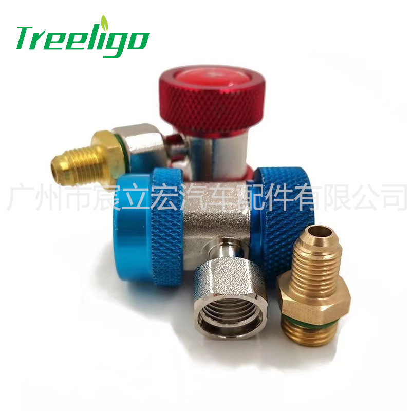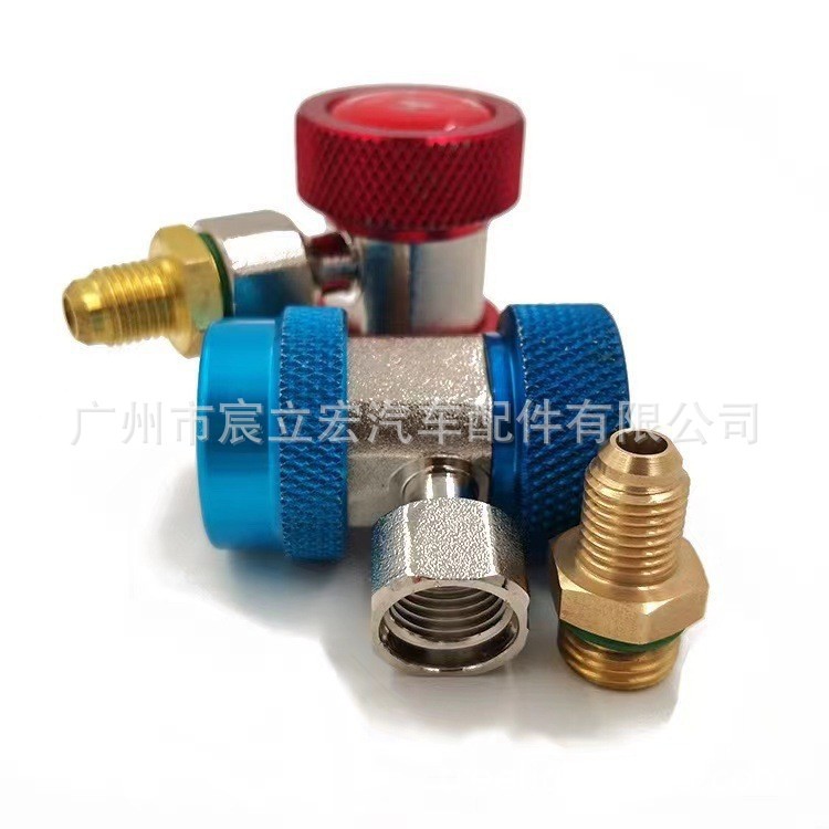 R134a 자동차 에어컨 높고 저압 빠른 커넥터 불소화 도구 황동 소재 인라인 조절 커넥터