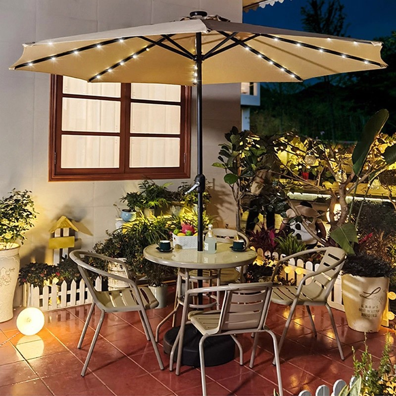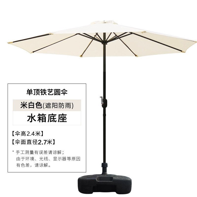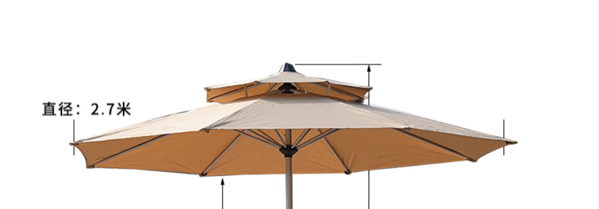 • 2.7m 고급형 알루미늄 합금 중앙 기둥 우산 [양면 덮개 + 받침대, 미색]