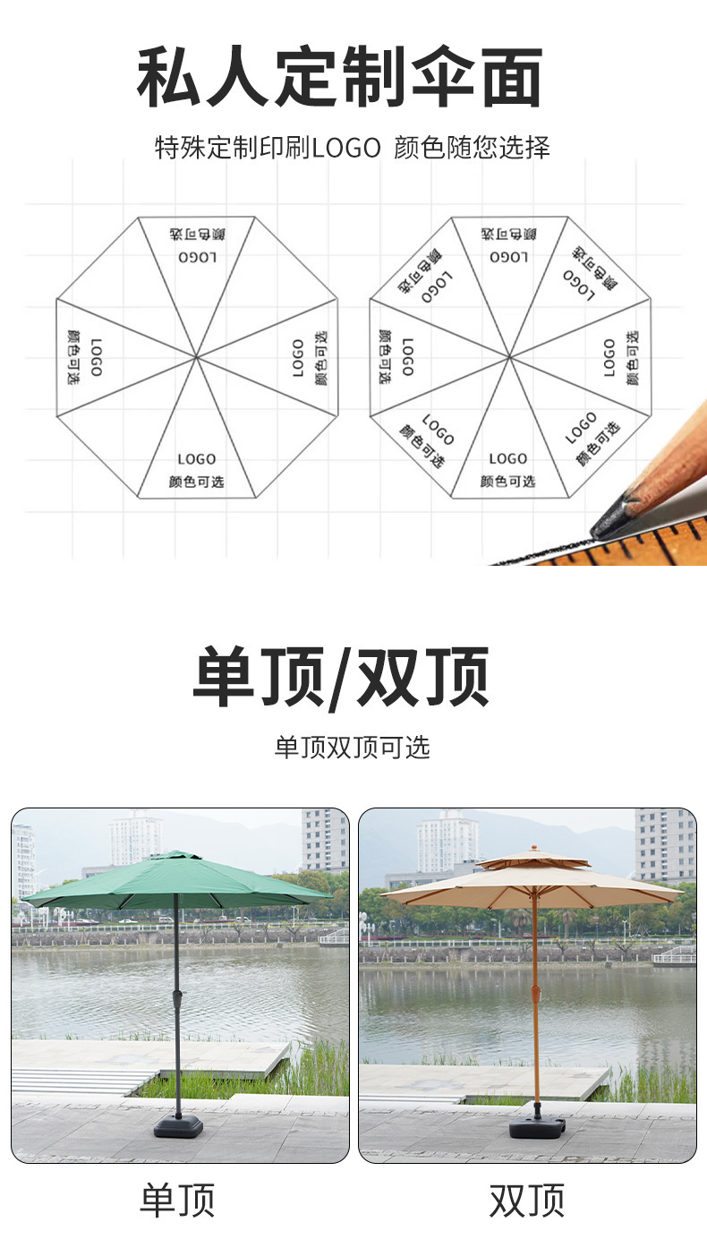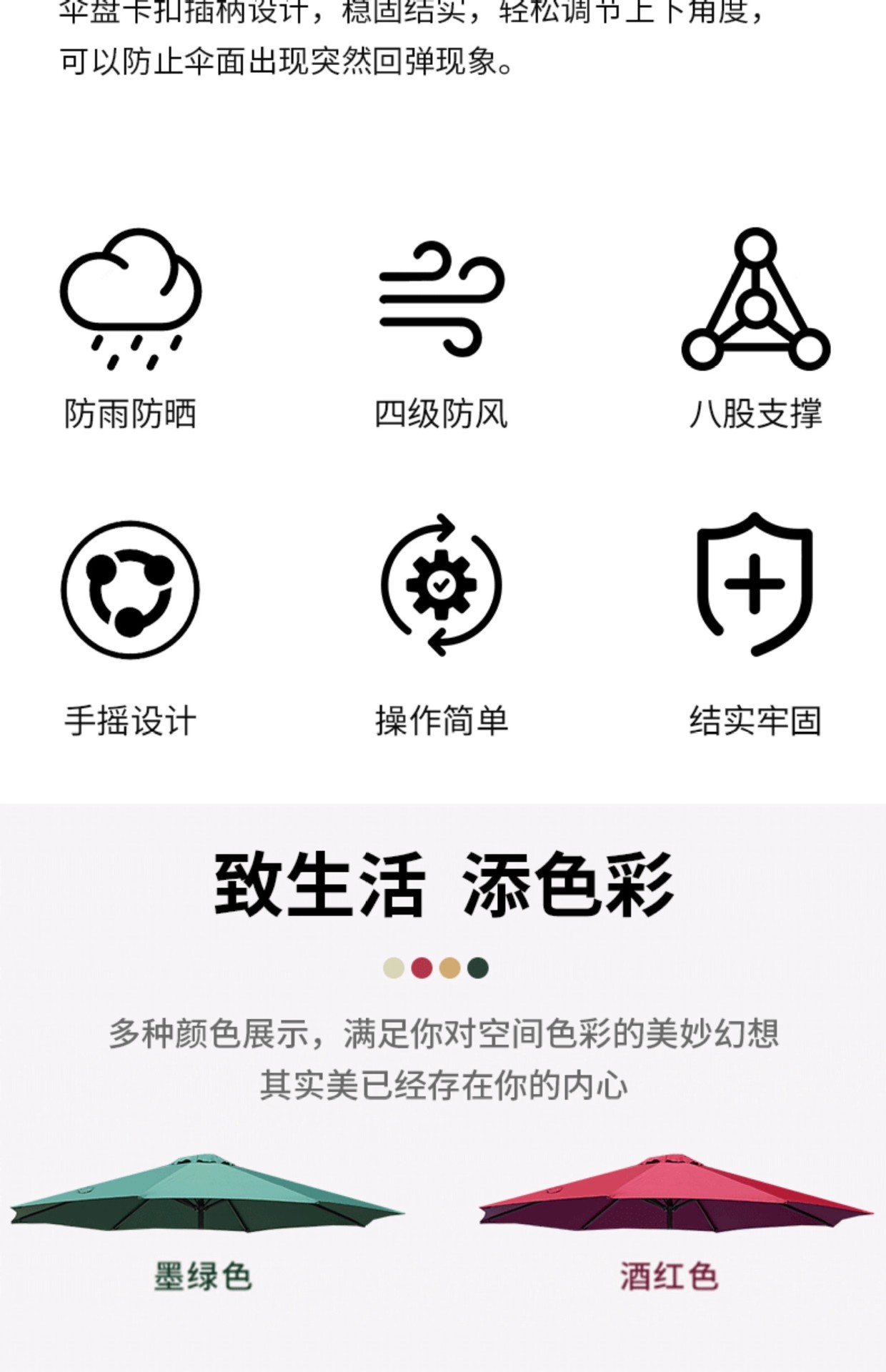 • 2.7m 손으로 흔드는 우산은 흔들 수 있습니다. [ 30kg 베이스, 진한 녹색] 마음대로 조절할 수 있습니다.
