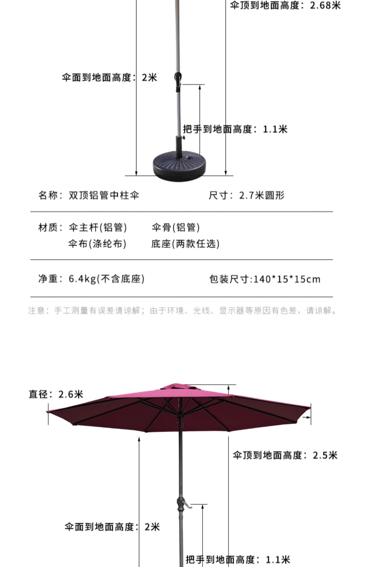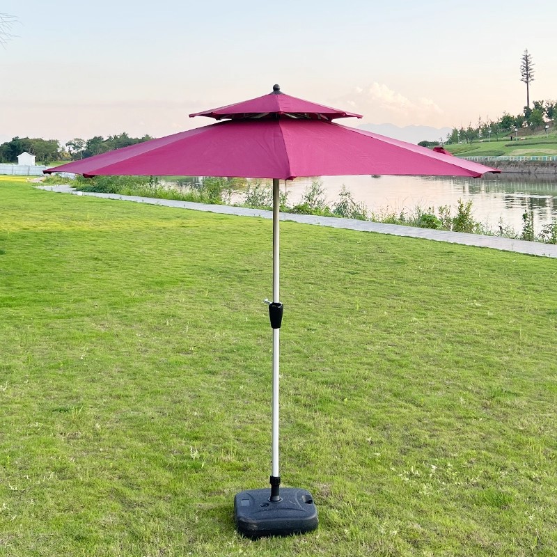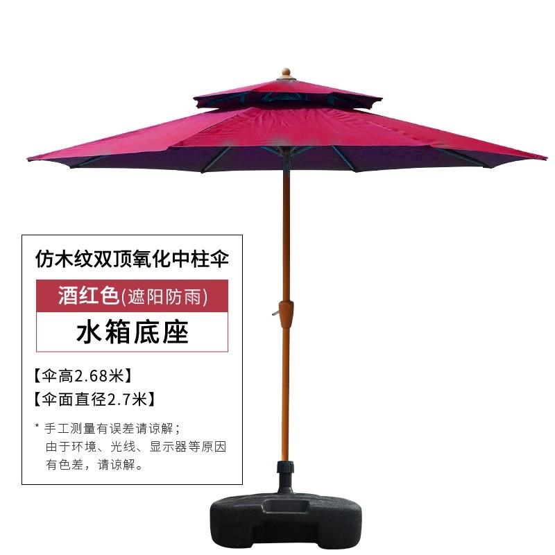 • 2.7m 고급형 알루미늄 합금 중앙 기둥 우산 [양면 덮개 + 받침대, 와인 레드]