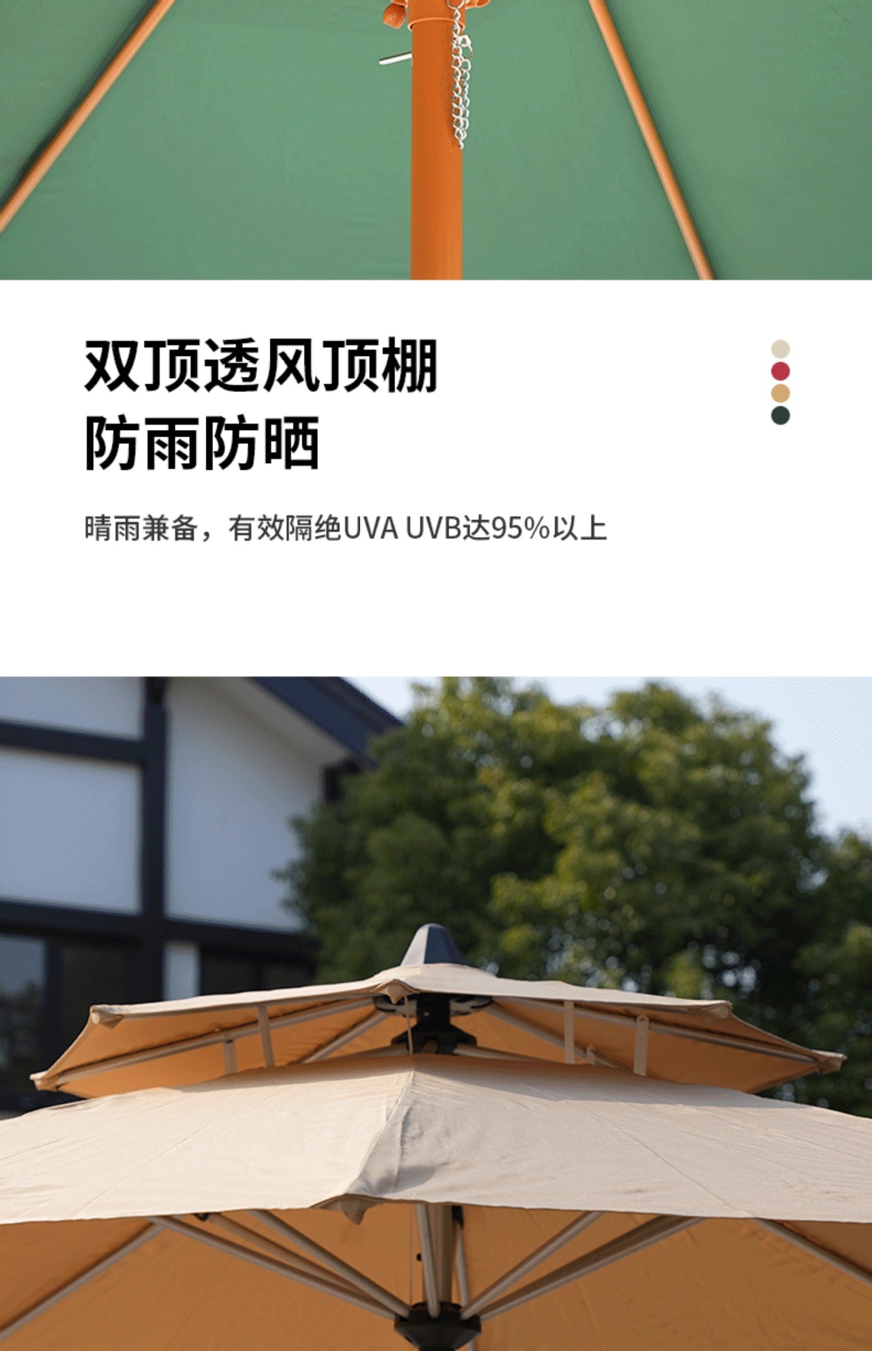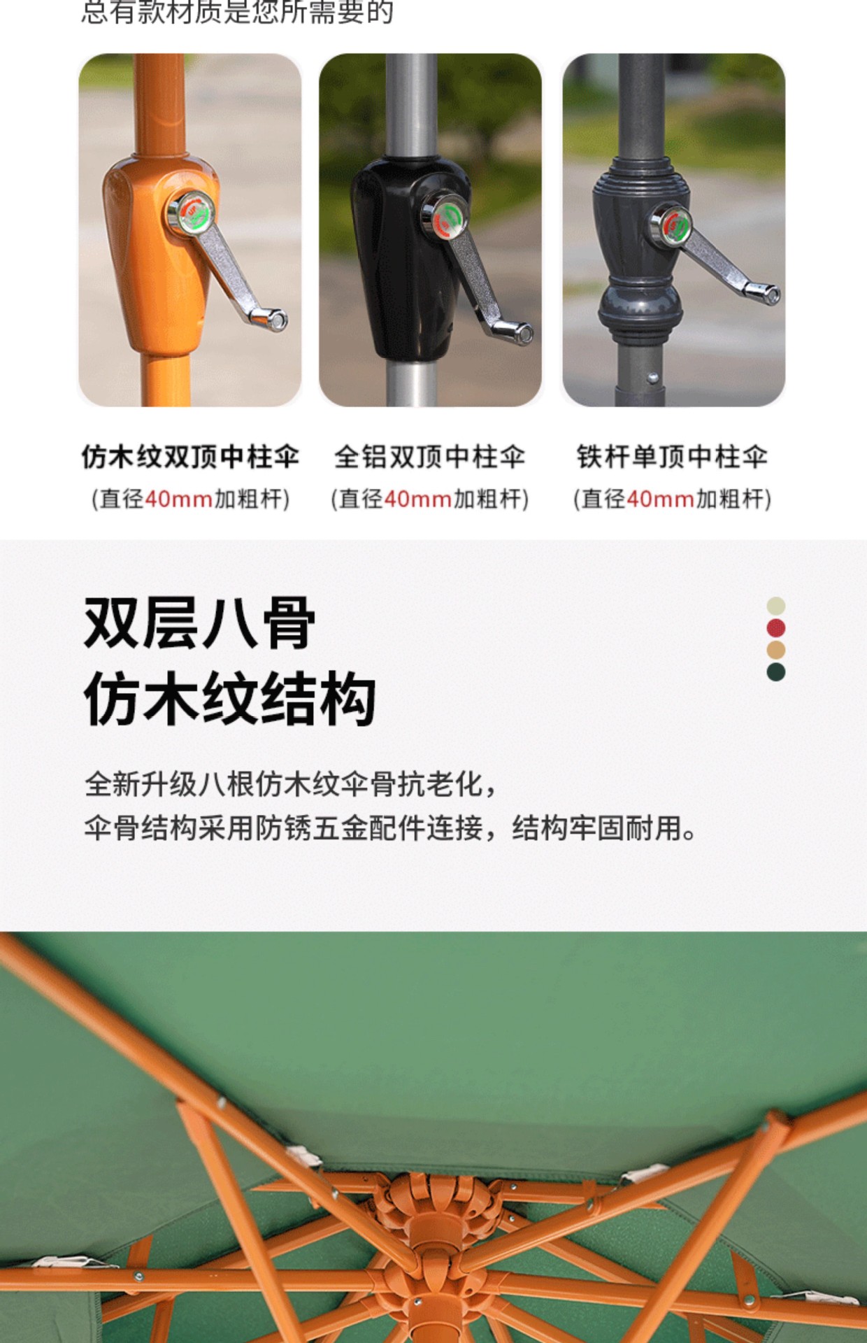 • 2.7m 손으로 돌리는 나무 기둥 우산 [이중 상단 + 베이스, 진한 녹색]