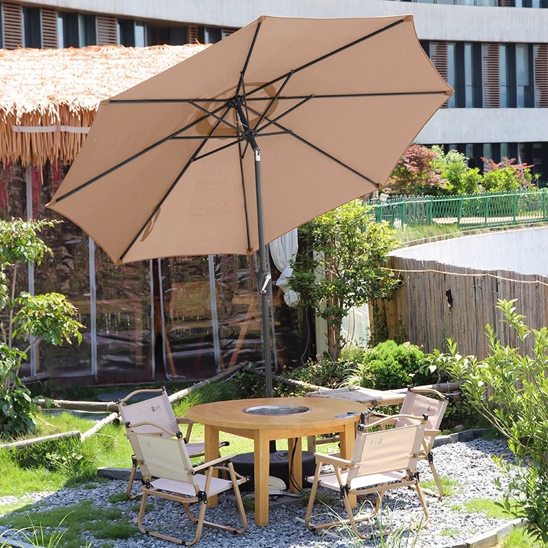 • 2.7m 핸드크랭크 센터폴 우산 [베이스 포함, 브라운]
