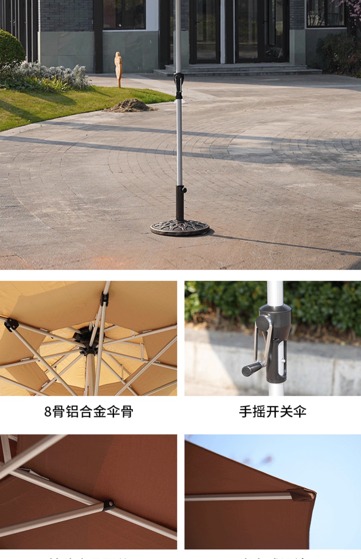 • 2.7m 손으로 흔드는 우산은 흔들 수 있습니다. [ 30kg 베이스, 브라운 ] 마음대로 조절 가능