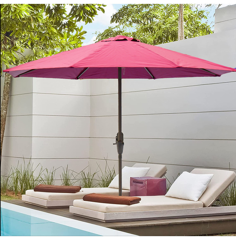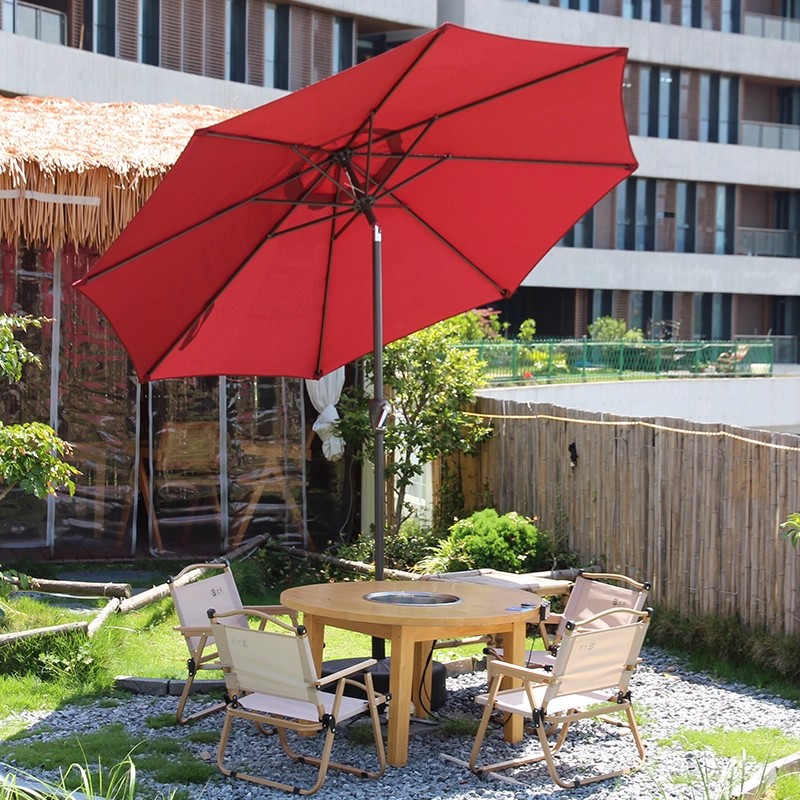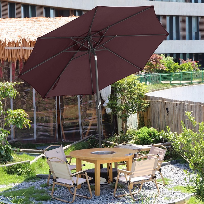 • 2.7m 핸드크랭크 센터폴 우산 [베이스 포함, 버건디]