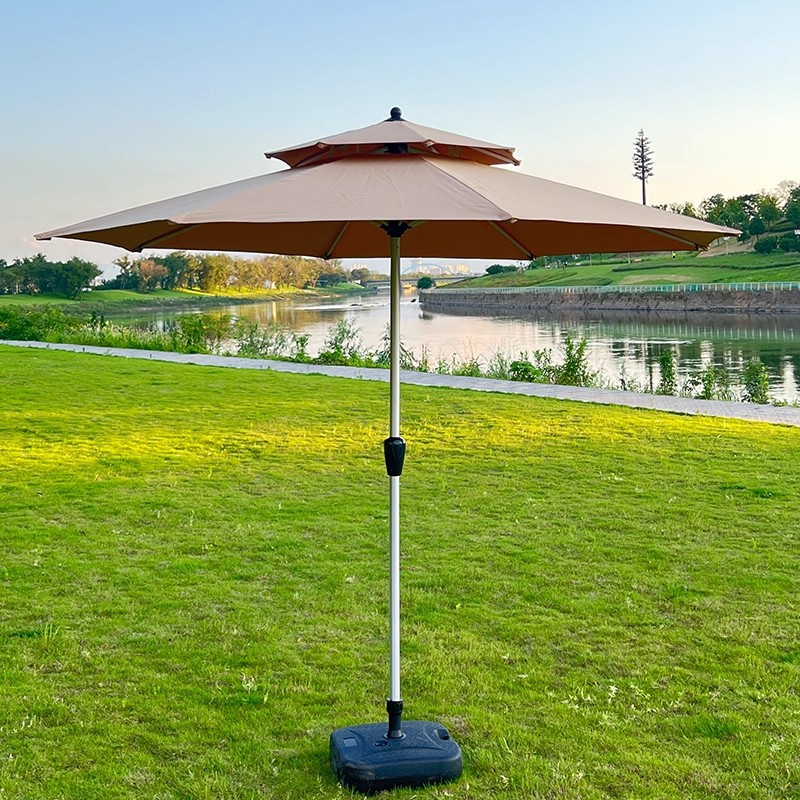 • 2.7m 고급형 알루미늄 합금 중앙 지지대 파라솔 [양면 덮개 + 받침대, 커피색]