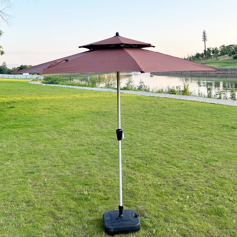 • 2.7m 핸드크랭크 센터폴 우산 [경사 헤드, 베이스 포함, 브라운]