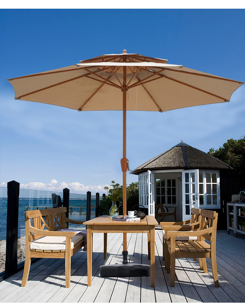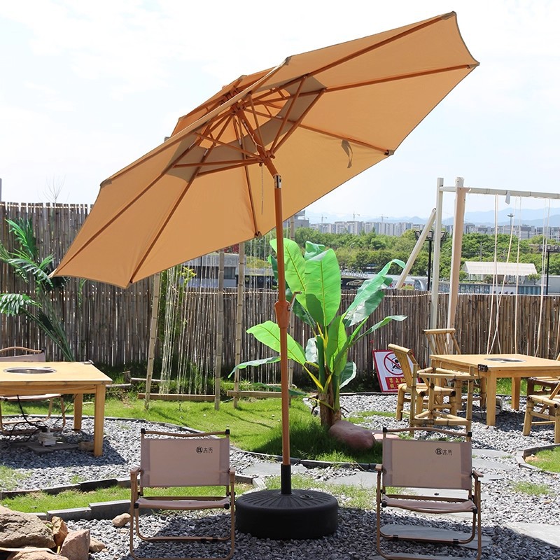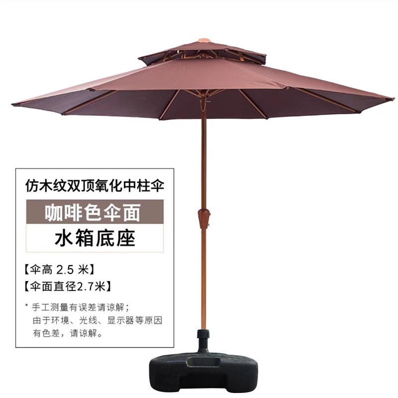 • 2.7m 손으로 돌리는 우드 컬러 폴 센터 우산 [더블 탑 + 베이스, 브라운]