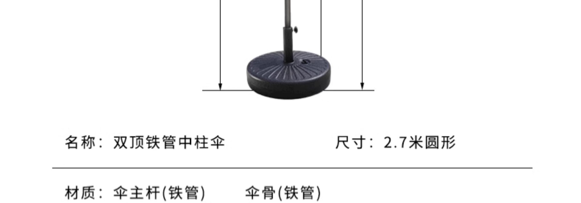 • 2.5* 1.3m 수동 반우산(주문 시 색상 참고) + 35L 물 주입 베이스