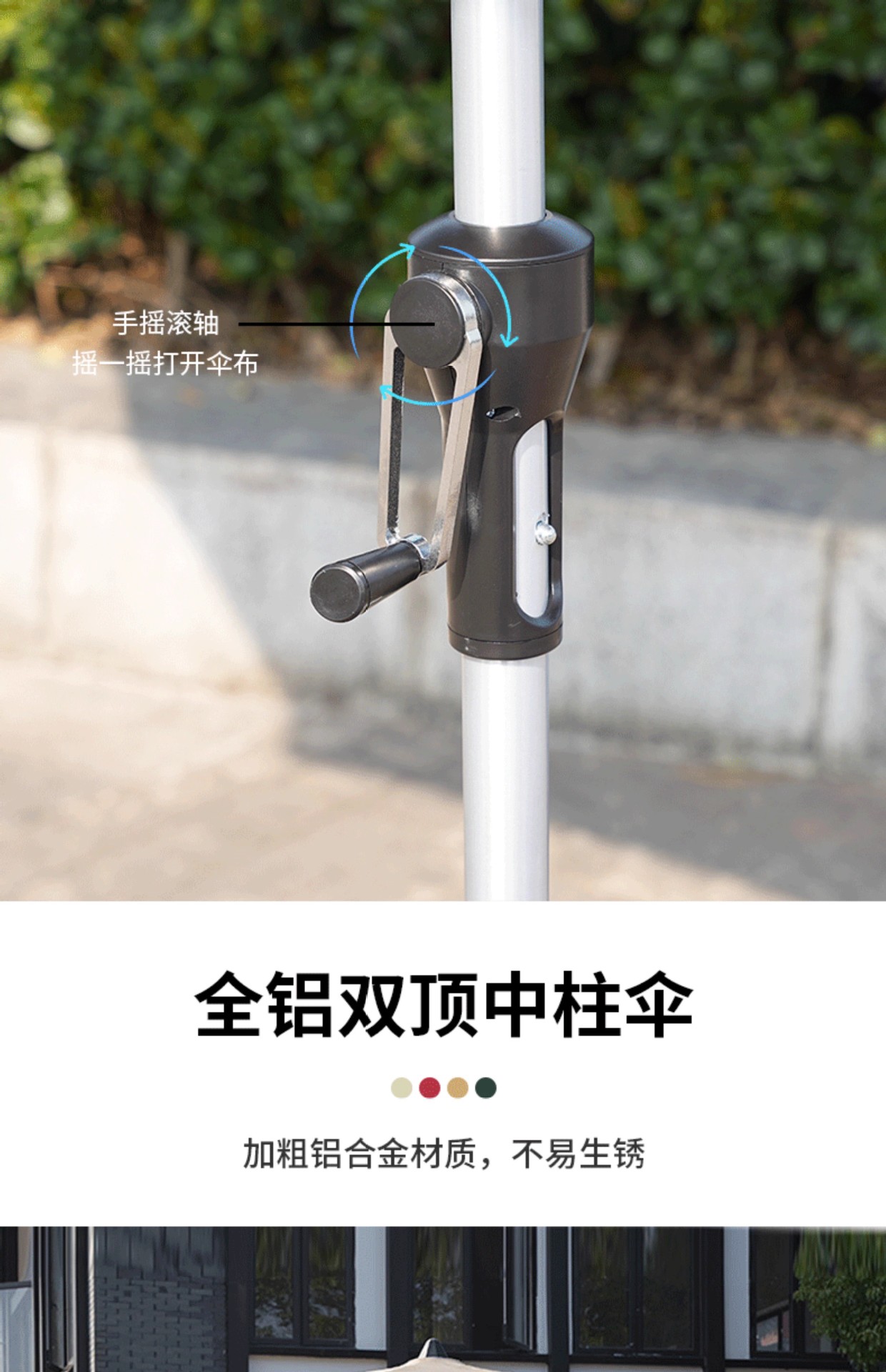 • 2.7m 머리가 흔들리는 핸드크랭크 우산 [베이스 30kg개, 카키색상] 마음대로 조절 가능