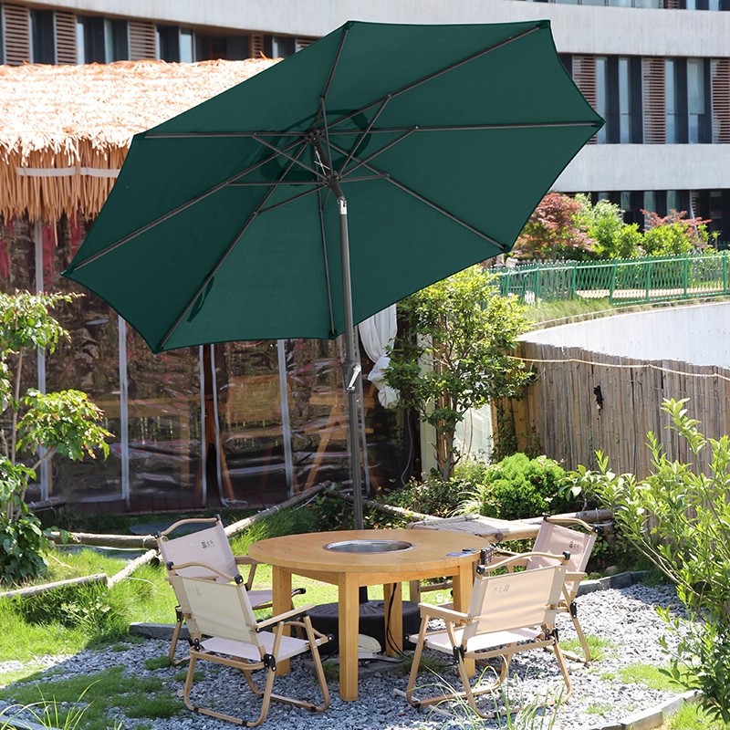• 2m 핸드크랭크 센터폴 우산 [베이스 포함, 진한 녹색]