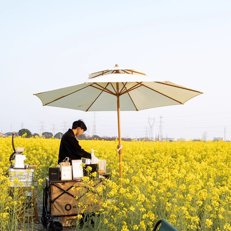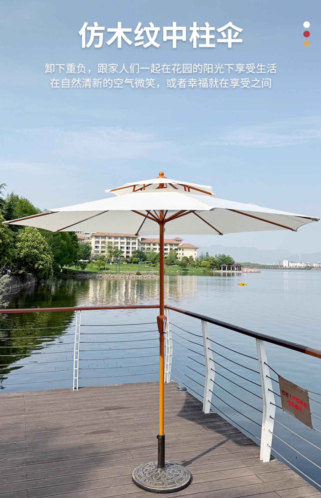 • 메인 사진과 동일한 스타일의 2.7m 핸드 크랭크 우드 컬러 폴 센터 우산 [더블 탑 + 베이스, 오프화이트]
