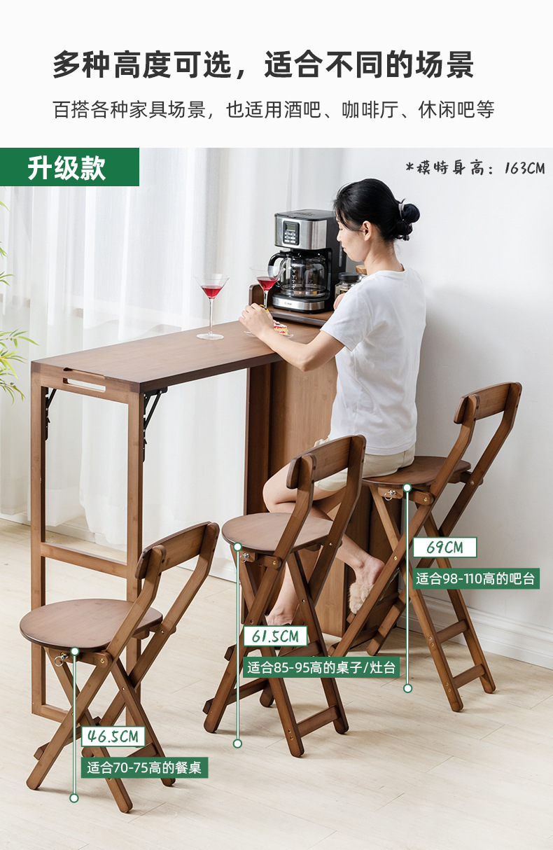 • 대나무 바 의자 큰 기본 색상의 접이식 무료 설치