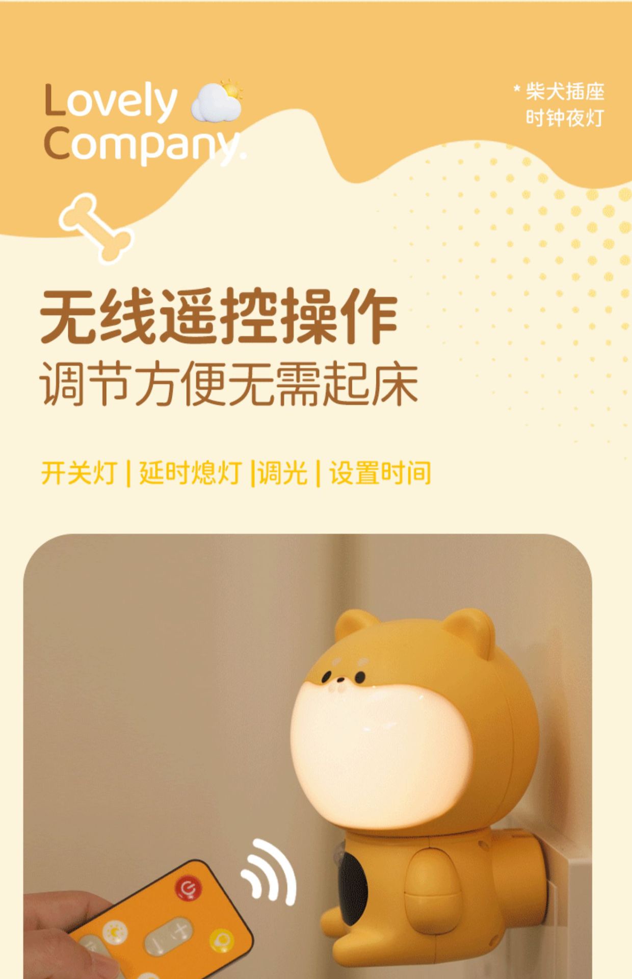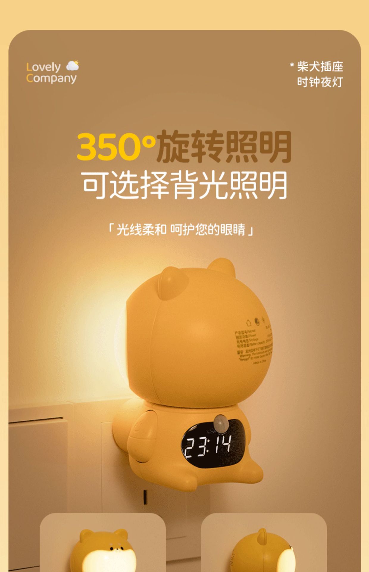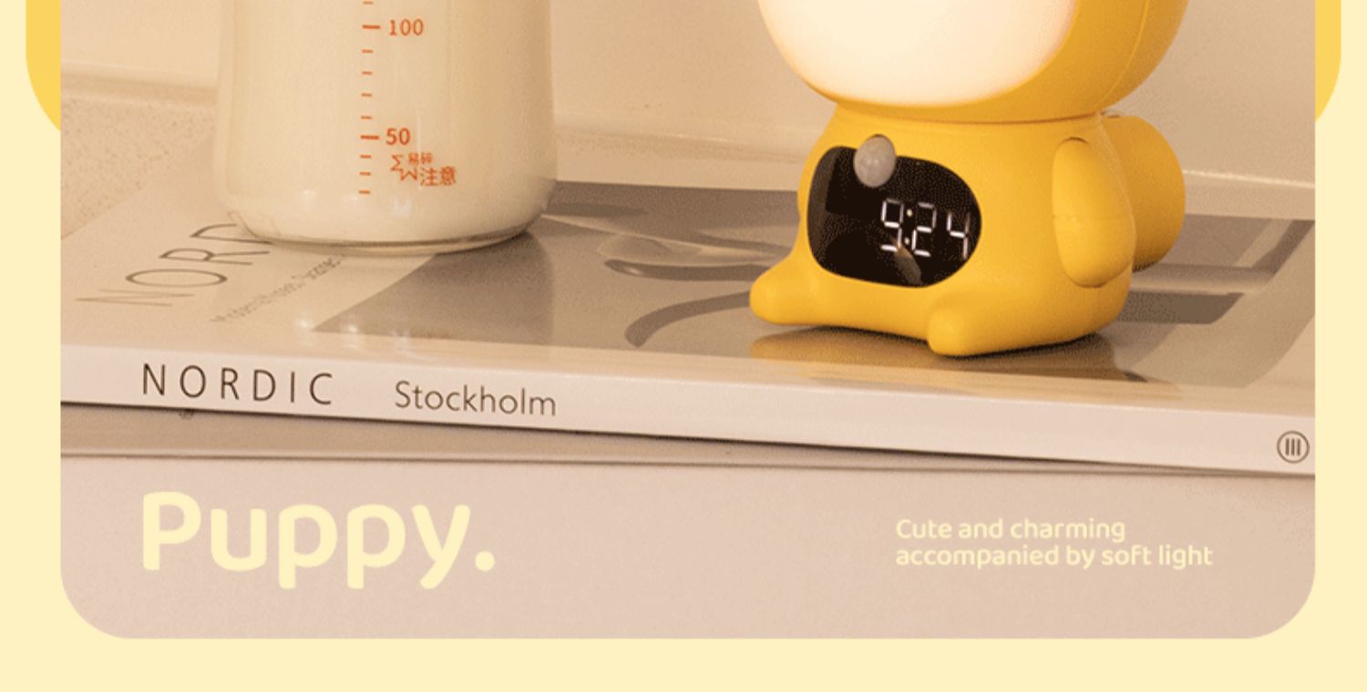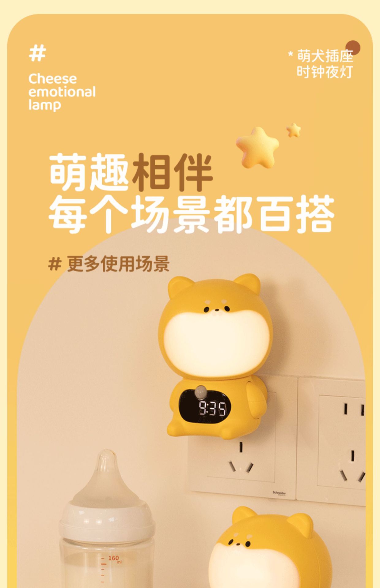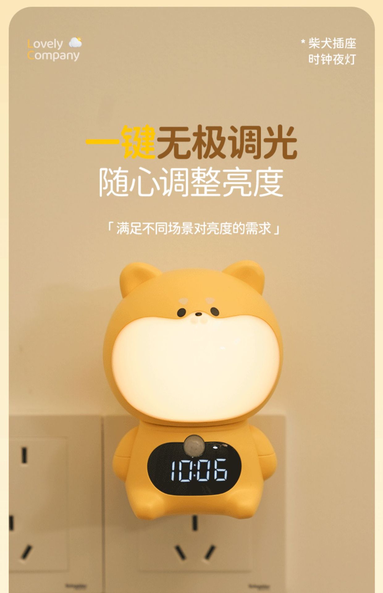 귀여운 개 소켓 시계 야간 조명 침실 만화 침대 옆 인체 유도 빛 새로운 어린이 조광 미니 분위기 빛