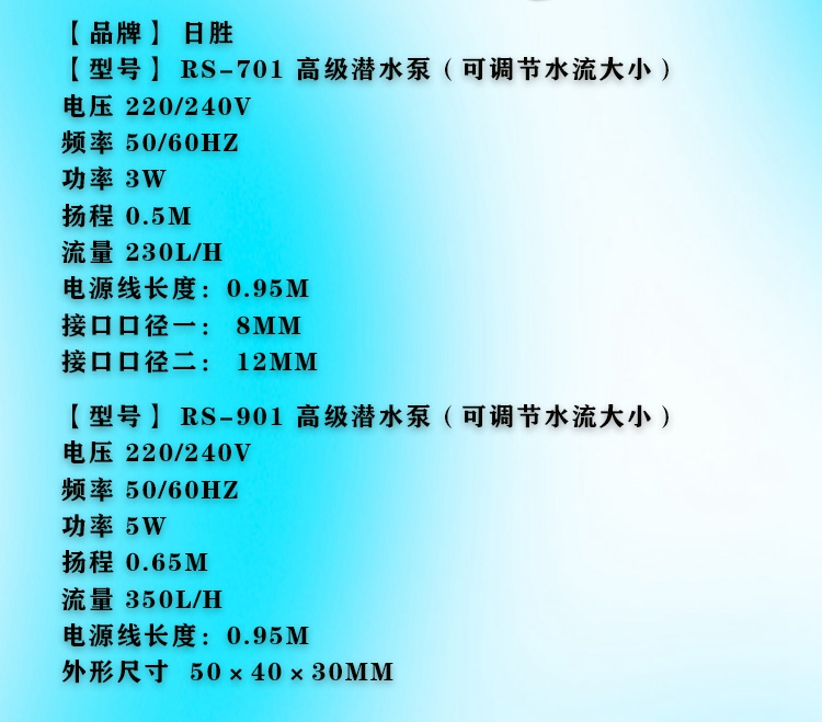 Risheng RS-701/RS-901 워터 펌프 어류 탱크 수족관 작은 잠수정 펌프 조정 가능한 물 흐름 펌프스토어 가기