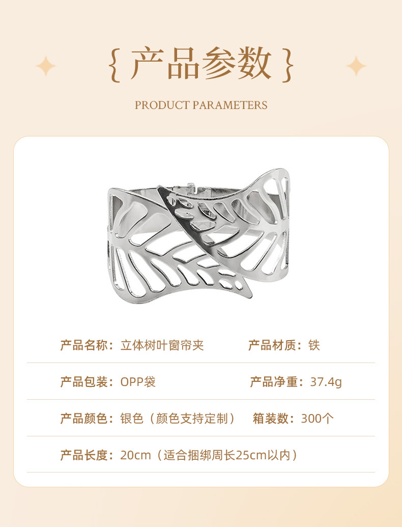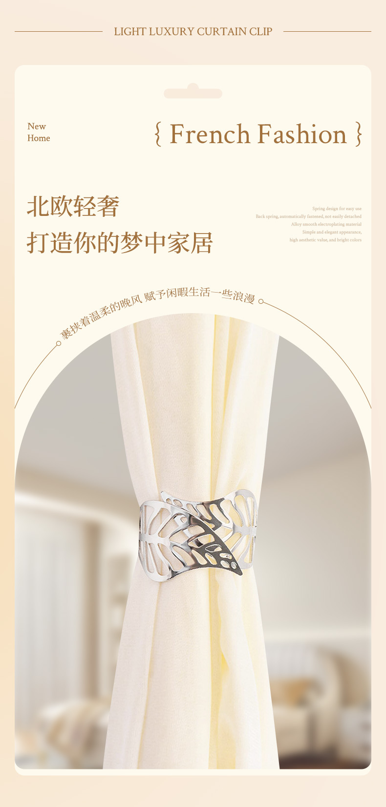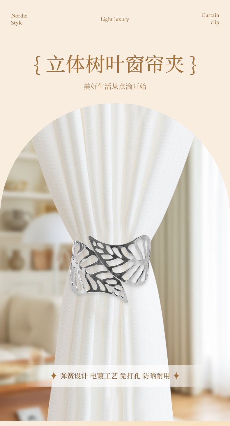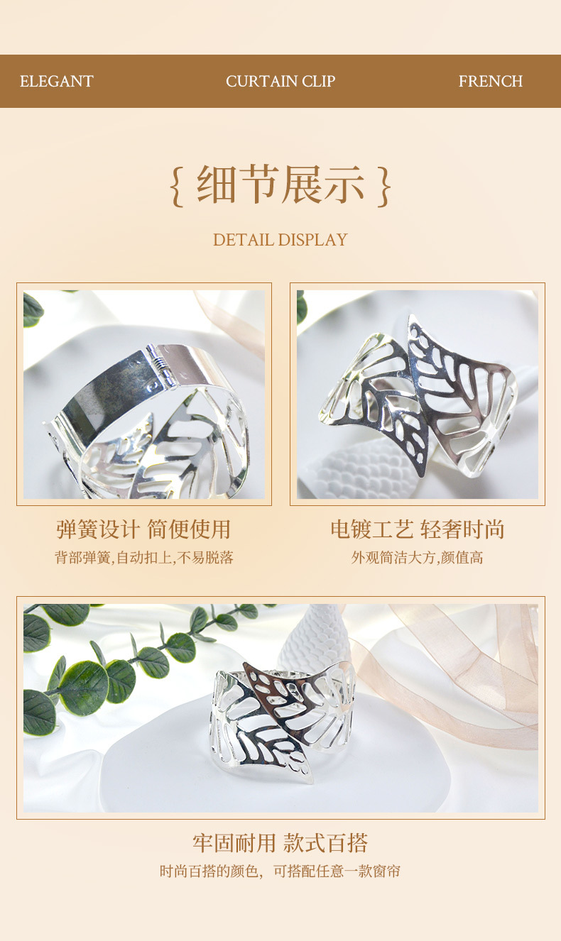 현대 미니멀 한 럭셔리 커튼 버클 스프링 커튼 스트랩 3 차원 잎 중공 고급 금속 커튼 클립 도매스토어 가기