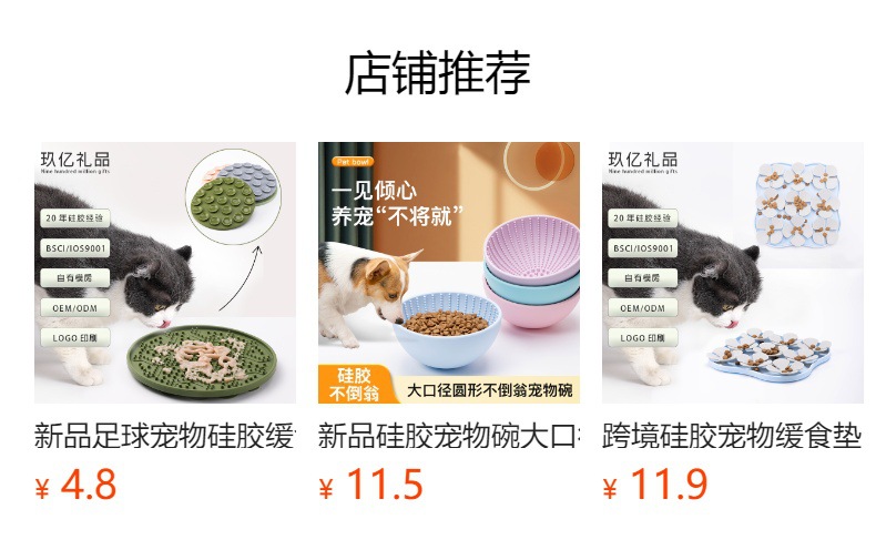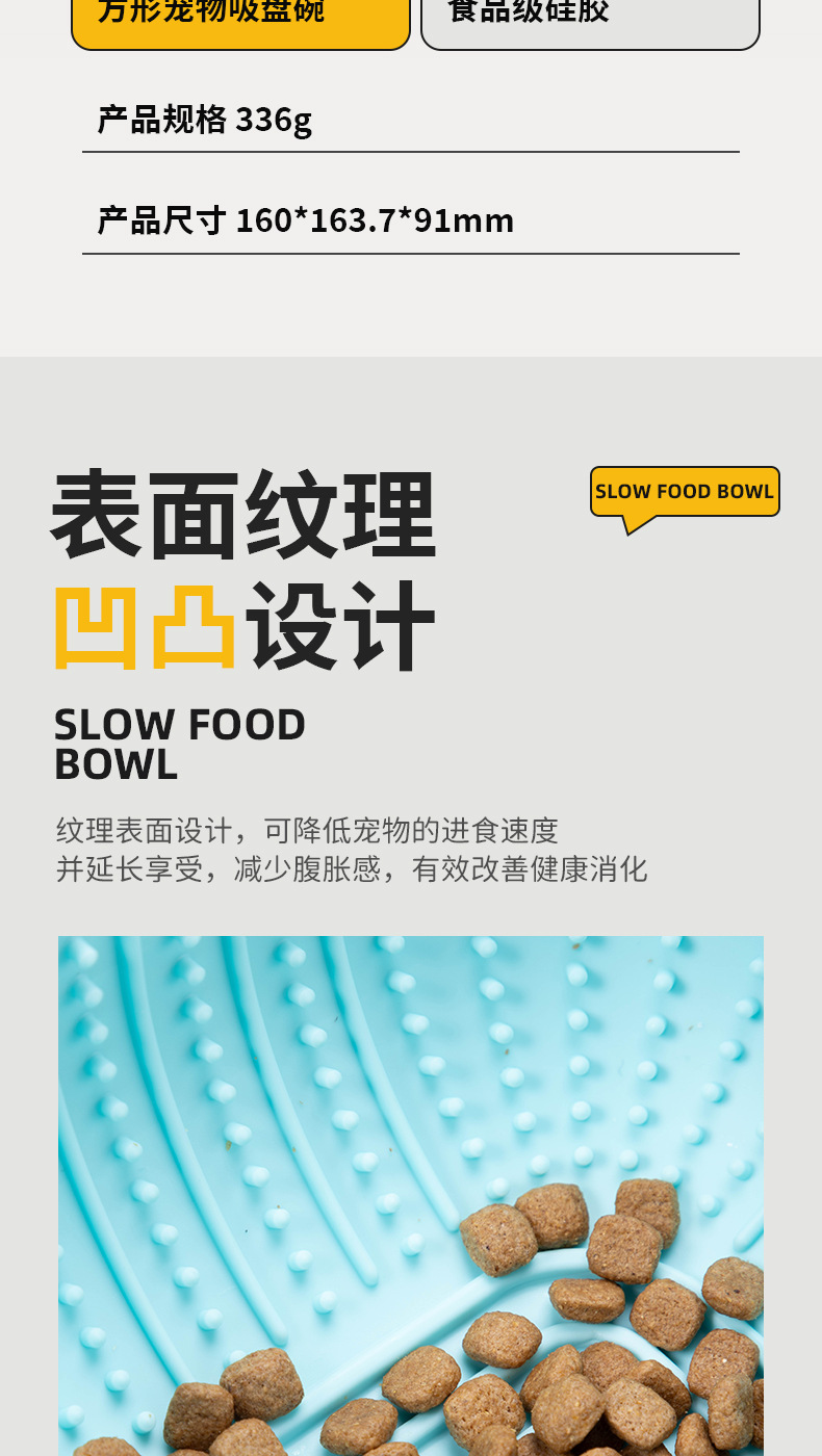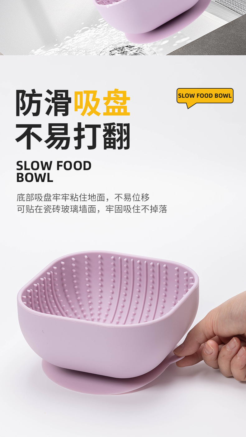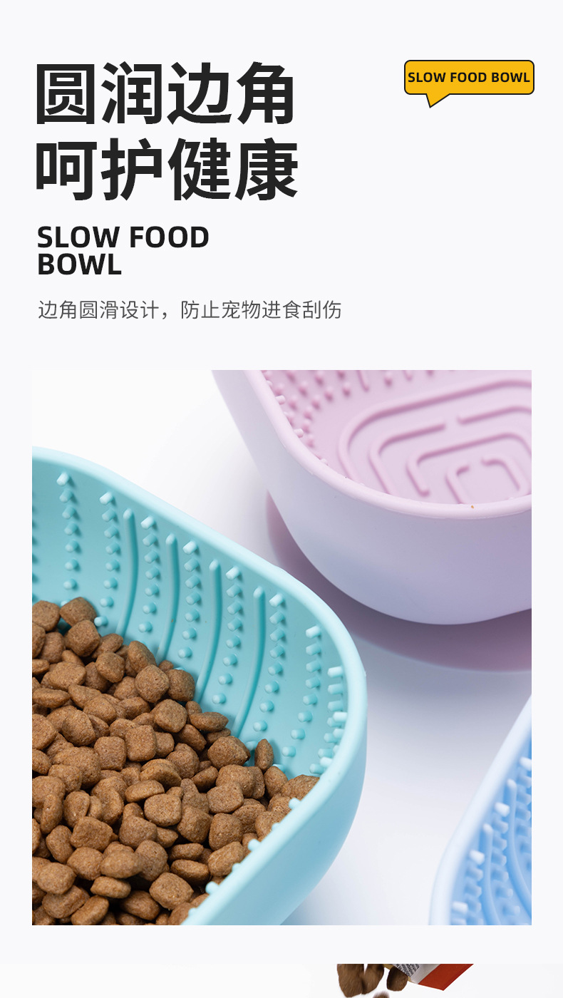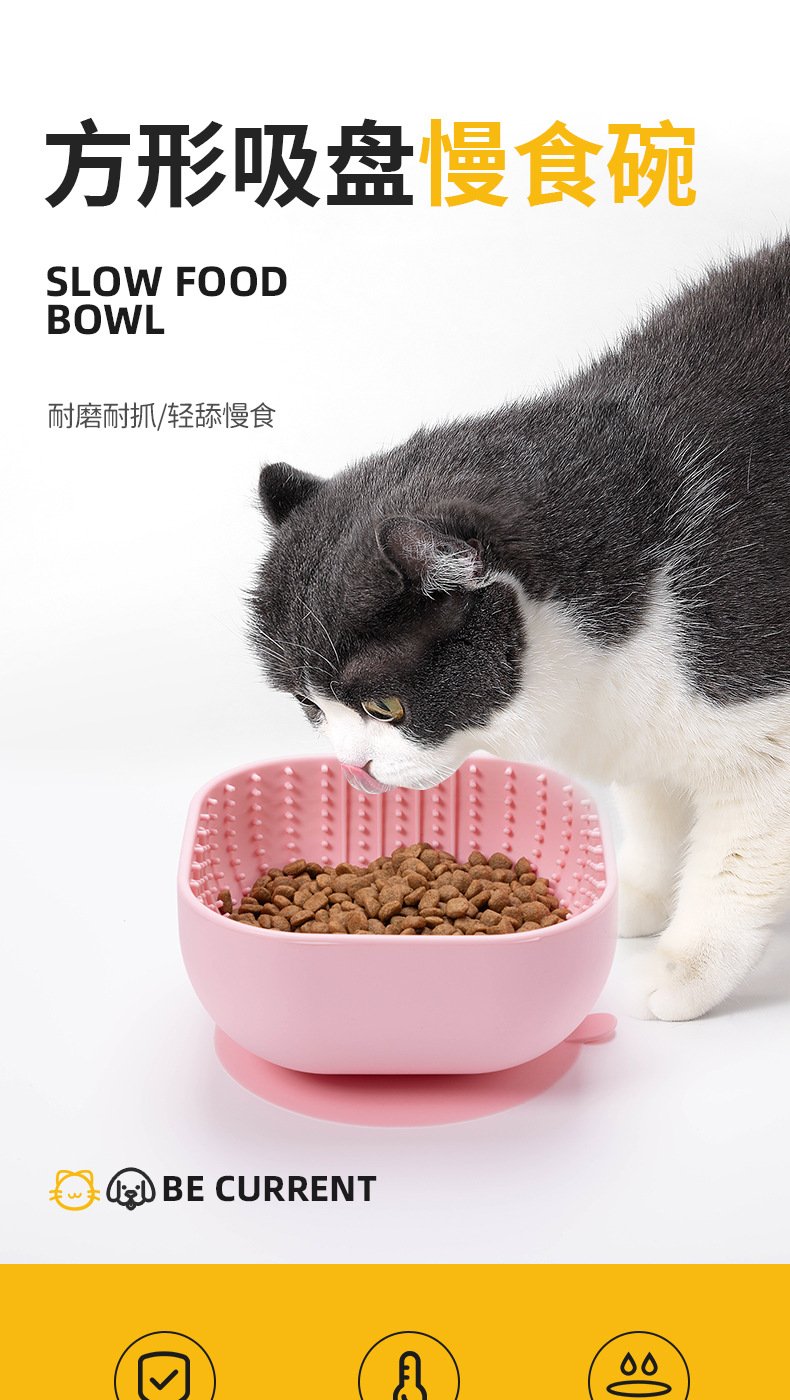 Temu 애완 동물 실리콘 그릇 개 식품 분지 고양이 식기 그릇 사각 흡입 컵 느린 식품 그릇 내마모성 캐치 방지 애완 동물 식품