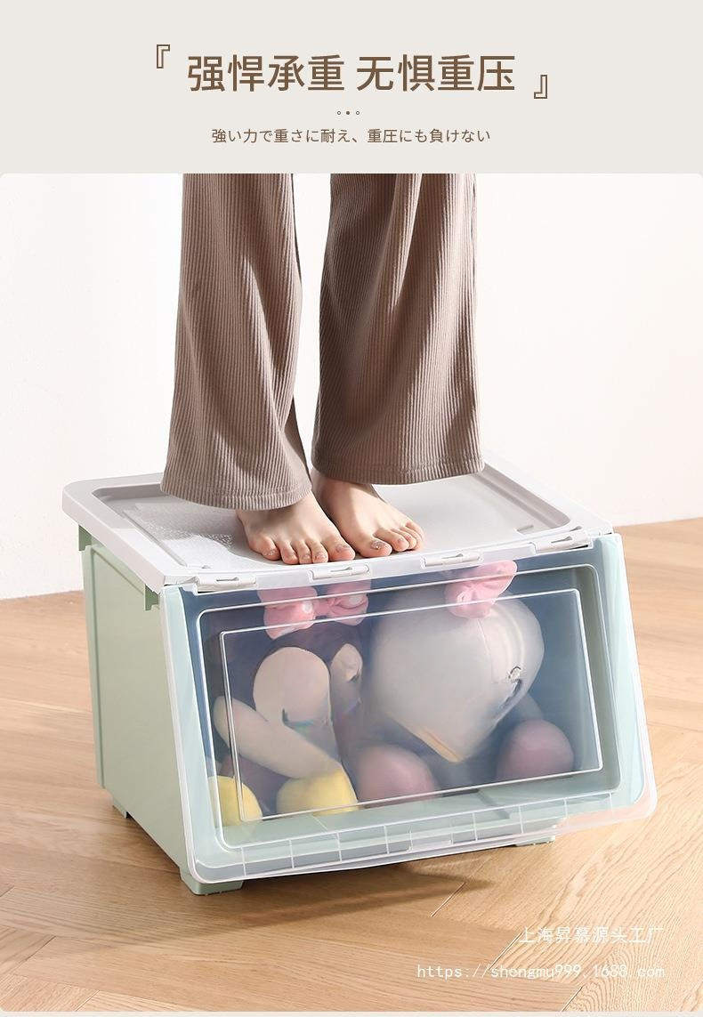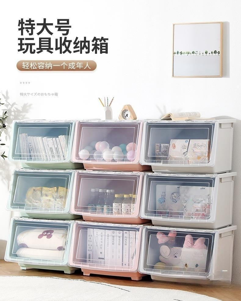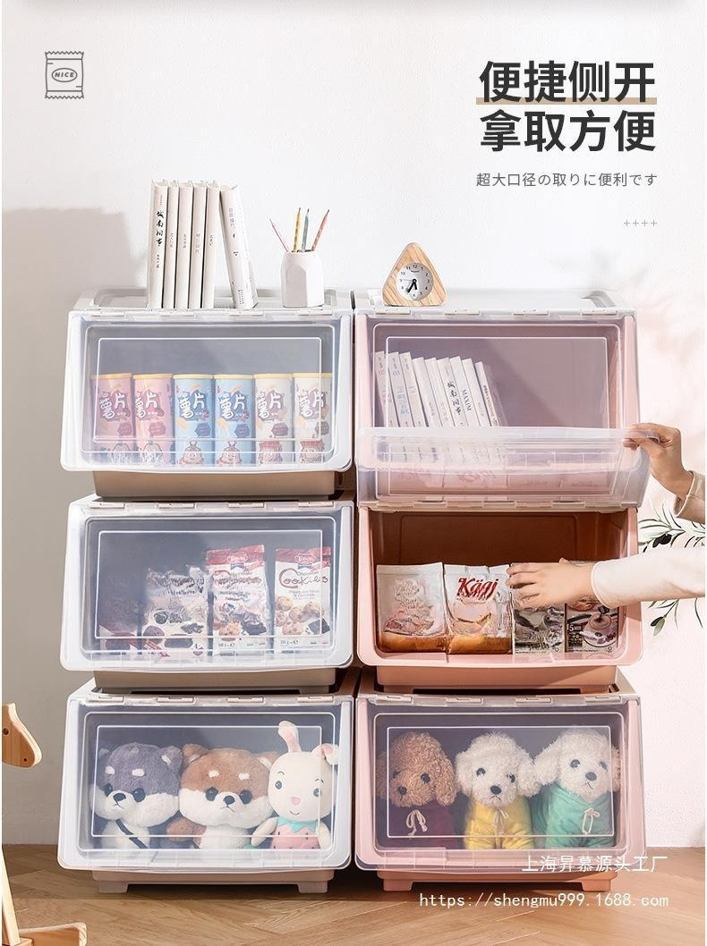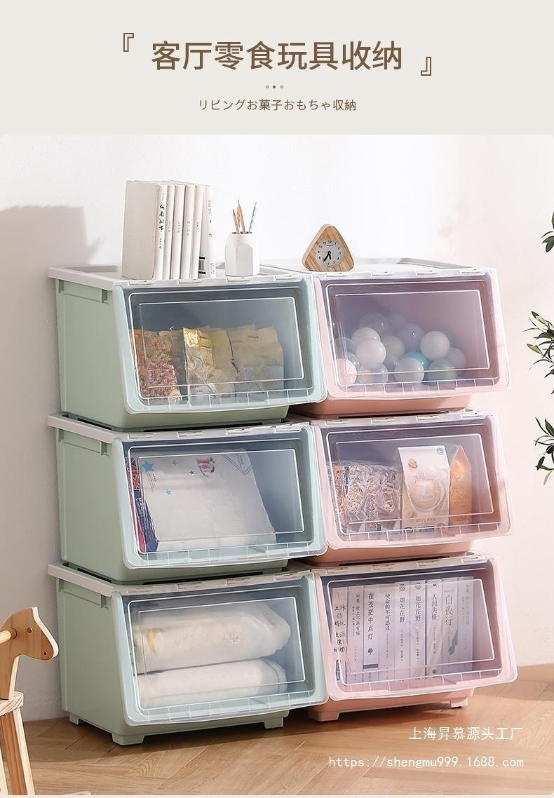 어린이 장난감 보관 상자 전면 오프닝 아기 플라스틱 플립 보관 상자 옷 보관 상자 스낵 보관 캐비닛