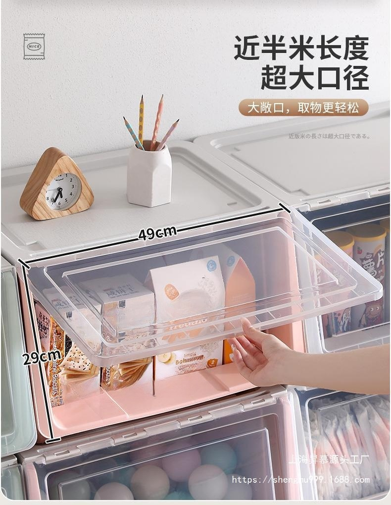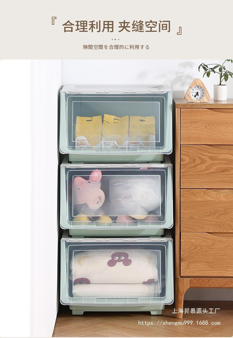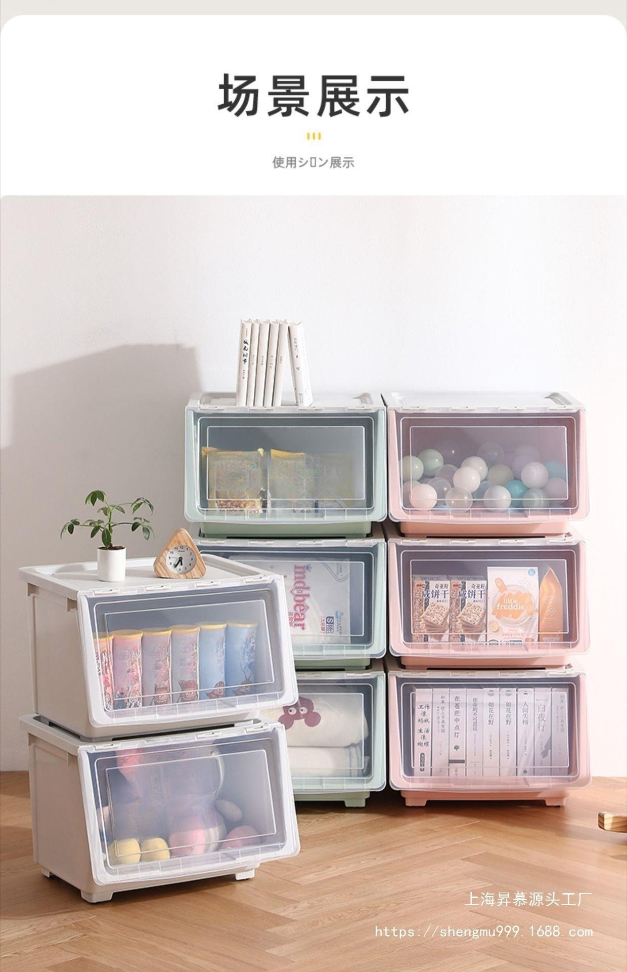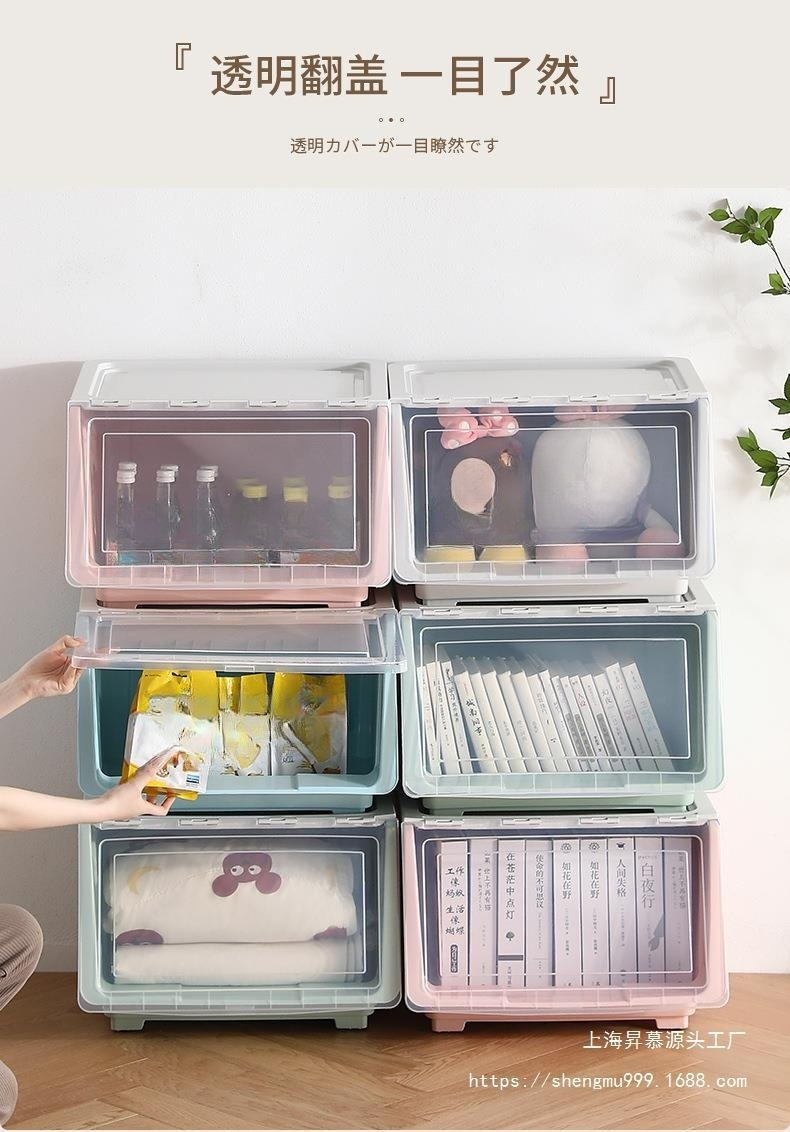 어린이 장난감 보관 상자 전면 오프닝 아기 플라스틱 플립 보관 상자 옷 보관 상자 스낵 보관 캐비닛
