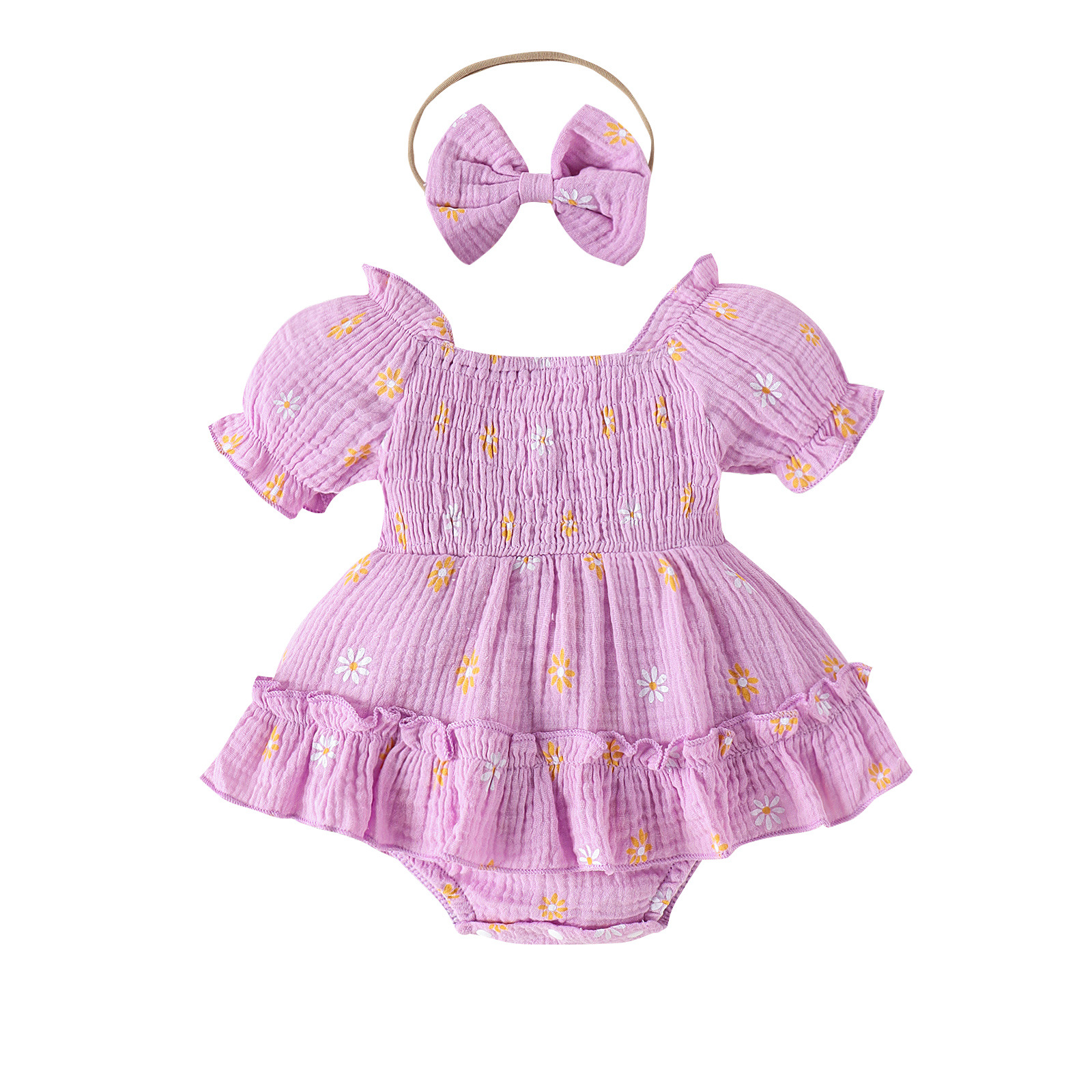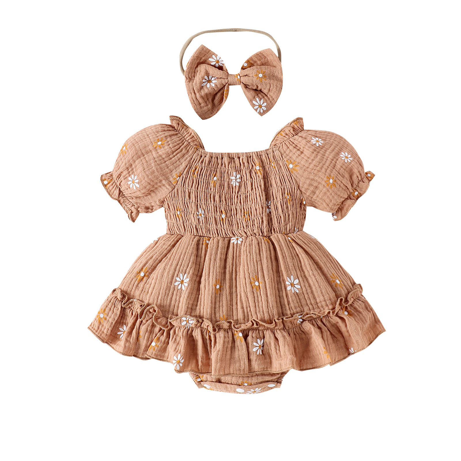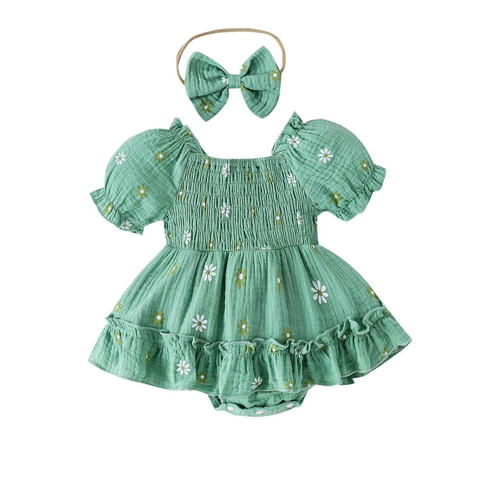 바오 핀 아동복 국경 유럽 및 미국 유아 새로운 여름 세트 반팔 원피스 하셀 헤드웨어 인쇄스토어 가기