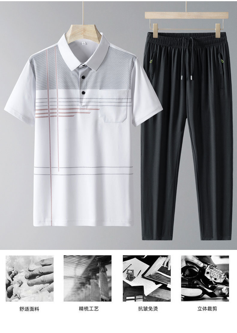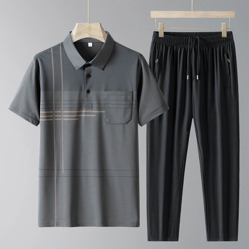 Diyu Shenlong 스포츠 세트 남자 여름 중년 및 노인 아이스 실크 폴로 셔츠 반팔 투피스 세트 빠른 건조 아빠의 세트