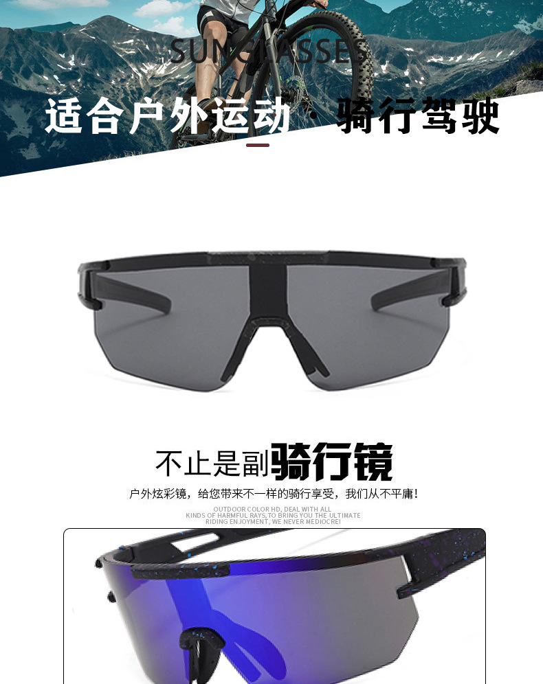 새로운 하프 프레임 스포츠 선글라스 국경 패션 승마 안경 방풍 운전 안경 다채로운 UV 보호